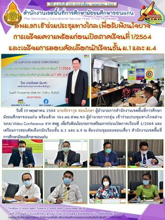 สพม.ขก เข้าร่วมประชุมทางไกล เพื่อรับฟังนโยบายการเตรียมการก่อนเปิดภาคเรียนที่ 1/2564 และเตรียมการสอบคัดเลือกนักเรียนชั้น ม.1 และ ม.4