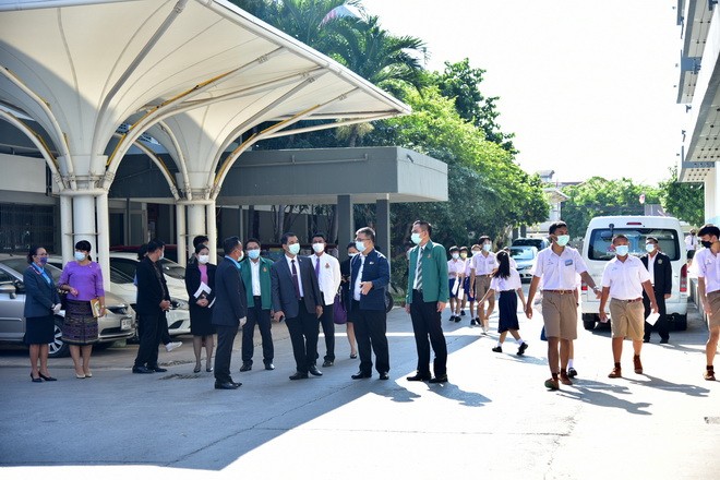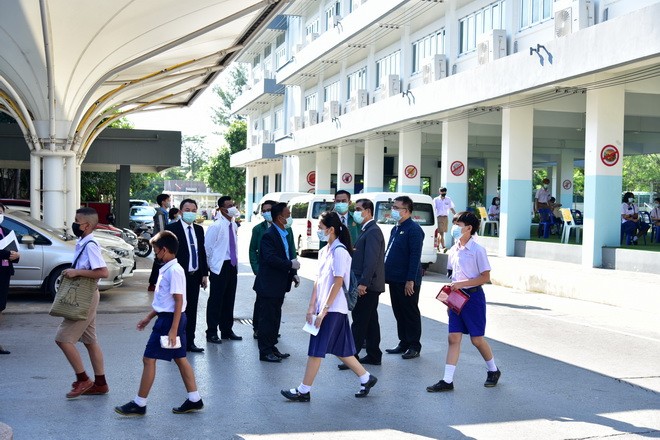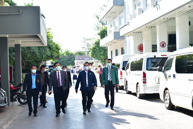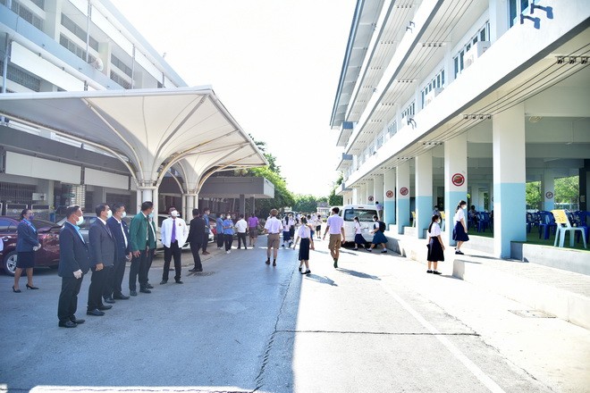 วันที่ 22 พฤษภาคม 2564 ว่าที่ร้อยตรี ดร.ธนุ วงษ์จินดา รองเลขาธิการคณะกรรมการการศึกษาขั้นพื้นฐาน ลงพื้นที่ตรวจเยี่ยมการดำเนินการจัดสอบคัดเลือกเข้า ม.1 โรงเรียนขอนแก่นวิทยายน พร้อมเน้นย้ำปฏิบัติตามมาตรการการป้องกันโรคตามประกาศของศูนย์บริหารสถานการณ์การแพร่ระบาดของโรคติดเชื้อไวรัสโคโรนา 2019 (COVID-19) (ศบค.) อย่างเคร่งครัด และกล่าวชื่นชมโรงเรียนซึ่งดำเนินการตามแนวปฏิบัติการรับนักเรียนได้อย่างเคร่งครัดในทุกขั้นตอนอย่างดียิ่ง ในโอกาสเดินทางมาตรวจเยี่ยมการดำเนินการจัดสอบคัดเลือกเข้า ม.1 และ ม.4 ในพื้นที่จังหวัดขอนแก่น นายจักราวุธ สอนโกษา ผู้อำนวยการสำนักงานเขตพื้นที่การศึกษามัธยมศึกษาขอนแก่น พร้อมด้วยคณะผู้บริหาร คณะครู ให้การต้อนรับ และอำนวยความสะดวกในการ ลงพื้นที่ตรวจเยี่ยมการดำเนินการจัดสอบคัดเลือกเข้า ม.1 ณ โรงเรียนขอนแก่นวิทยายน จังหวัดขอนแก่น |