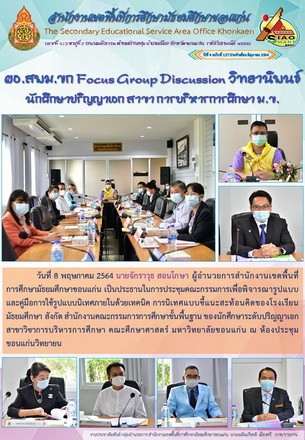 | กลับหน้าหลัก | ผอ.สพม.ขก Focus Group Discussion วิทยานิพนธ์นักศึกษาปริญญาเอก สาขา การบริหารการศึกษา ม.ข. |