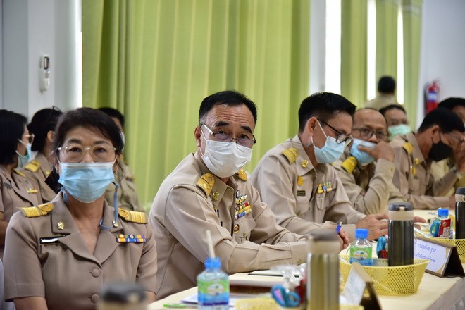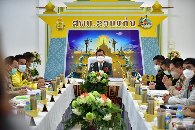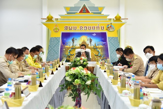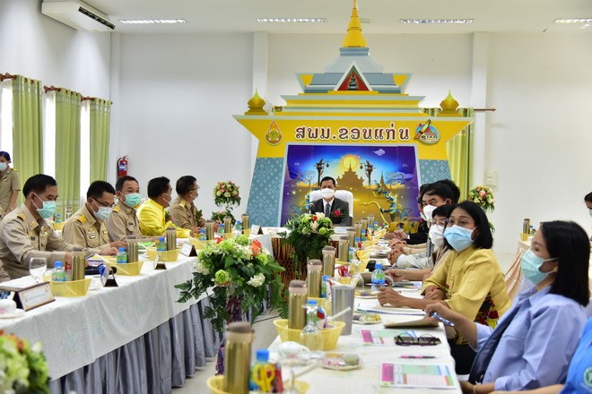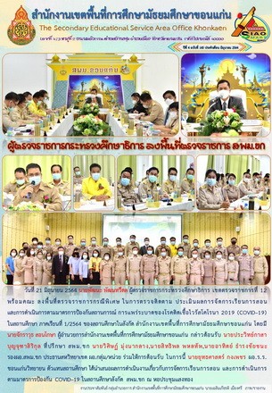วันที่ 21 มิถุนายน 2564 นายพัฒนะ พัฒนทวีดล ผู้ตรวจราชการกระทรวงศึกษาธิการ เขตตรวจราชการที่ 12 พร้อมคณะ ลงพื้นที่ตรวจราชการกรณีพิเศษ ในการตรวจ ติดตาม ประเมินผลการจัดการเรียนการสอน และการดำเนินการตามมาตรการป้องกันสถานการณ์ การแพร่ระบาดของโรคติดเชื้อไวรัสโคโรนา 2019 (COVID – 19) ในสถานศึกษา ภาคเรียนที่ 1/2564 ของสถานศึกษาในสังกัด สำนักงานเขตพื้นที่การศึกษามัธยมศึกษาขอนแก่น โดยมี นายจักราวุธ สอนโกษา ผู้อำนวยการสำนักงานเขตพื้นที่การศึกษามัธยมศึกษาขอนแก่น กล่าวต้อนรับ นายประวิทย์กาสา บุญจุฑาสิริกุล ที่ปรึกษา สพม.ขก นายวิศิษฏ์ มุ่งนากลาง,นายสิทธิพล พหลทัพ, นายอาทิตย์ ธำรงชัยชนะ รองผอ.สพม.ขก ประธานสหวิทยาเขต ผอ.กลุ่ม/หน่วย ร่วมให้การต้อนรับ ในการนี้ นายยุทธศาสตร์ กงเพชร ผอ.ร.ร.ขอนแก่นวิทยายน ตัวแทนสถานศึกษา ได้นำเสนอผลการดำเนินงานเกี่ยวกับการจัดการเรียนการสอน และการดำเนินการตามมาตรการป้องกัน COVID – 19 ในสถานศึกษา สังกัด สพม.ขก ณ หอประชุมแสงทอง สำนักงานเขตพื้นที่การศึกษามัธยมศึกษาขอนแก่น |