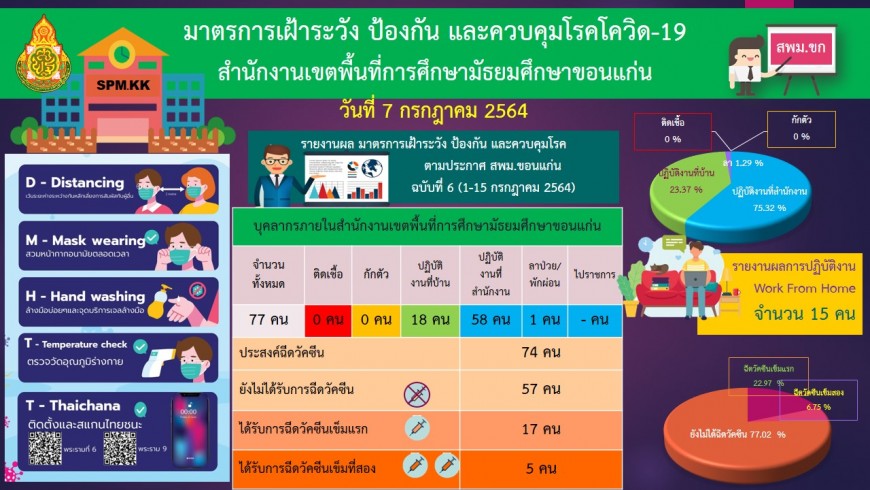 | มาตรการเฝ้าระวัง ป้องกัน และควบคุมการแพร่ระบาดของโรคติดเชื้อไวรัส โคโรนา 2019 ของสำนักงานเขตพื้นที่การศึกษามัธยมศึกษาขอนแก่น วันที่ 7 ก.ค. 2564 | |