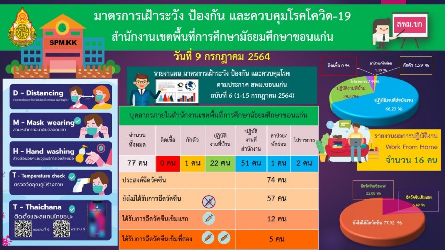 | มาตรการเฝ้าระวัง ป้องกัน และควบคุมการแพร่ระบาดของโรคติดเชื้อไวรัส โคโรนา 2019 ของสำนักงานเขตพื้นที่การศึกษามัธยมศึกษาขอนแก่น วันที่ 9 ก.ค. 2564 | |