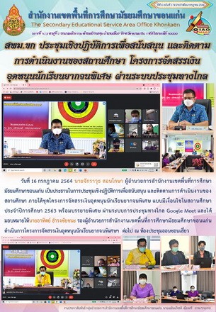 สพม.ขก ประชุมเชิงปฏิบัติการเพื่อสนับสนุน และติดตามการดำเนินงานของสถานศึกษา โครงการจัดสรรเงินอุดหนุนนักเรียนยากจนพิเศษ ผ่านระบบประชุมทางไกล Google Meet