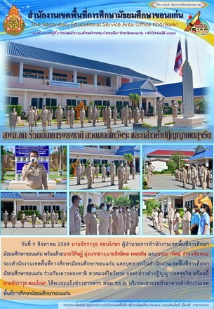 | กลับหน้าหลัก | สพม.ขก ร่วมกันเคารพธงชาติ สวดมนต์ไหว้พระ และกล่าวคำปฏิญญาเขตสุจริต |