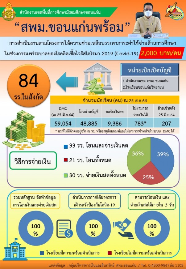 | สพม.ขอนแก่นพร้อม การดำเนินงานตามโครงการให้ความช่วยเหลือบรรเทาภาระค่าใช้จ่ายด้านก่รศึกษาในช่วงการแพร่ระบาดของโรคติดเชื้อไวรัสโคโรนา 2019 (Covid-19) | |