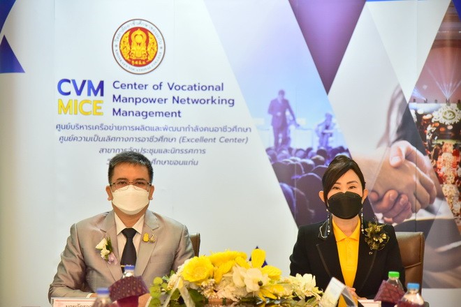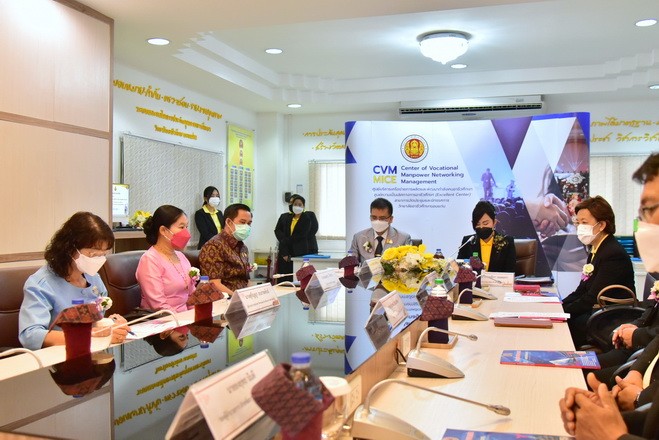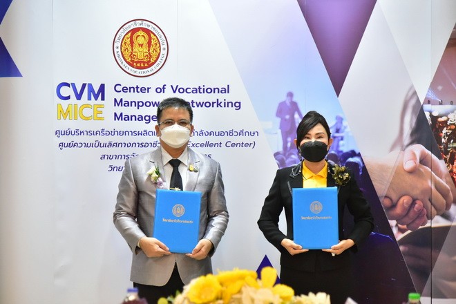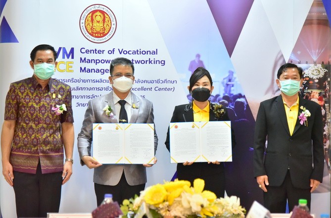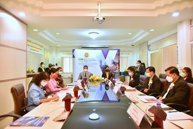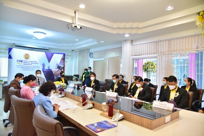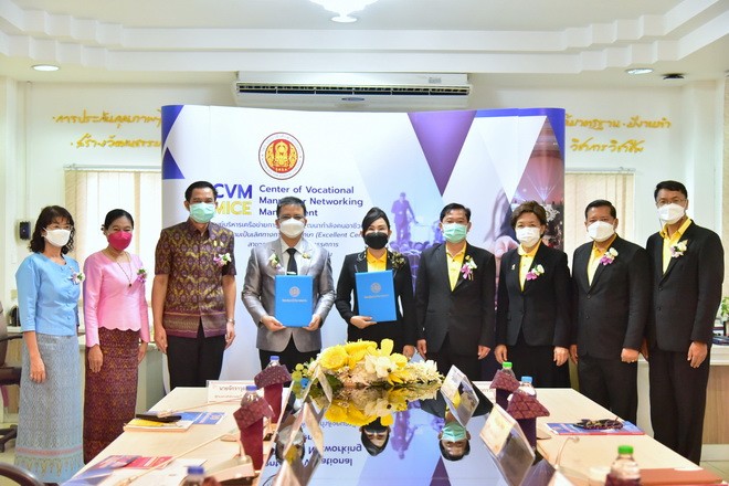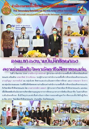 วันที่ 3 กันยายน 2564 นายจักราวุธ สอนโกษา ผู้อำนวยการสำนักงานเขตพื้นที่การศึกษามัธยมศึกษาขอนแก่น พร้อมด้วยนายอาทิตย์ ธำรงชัยชนะ รองผู้อำนวยการสำนักงานเขตพื้นที่การศึกษามัธยมศึกษาขอนแก่น นางสุกัญญา อนรรฆพันธ์ ผอ.กลุ่มนิเทศติดตาม และประเมินผลการจัดการศึกษา และนางดณษภร ผิวขาว ผอ.กลุ่มนโยบายและแผน ร่วมพิธีบันทึกข้อตกลงความร่วมมือระหว่างสำนักงานเขตพื้นที่การศึกษามัธยมศึกษาขอนแก่น กับ วิทยาลัยอาชีวศึกษาขอนแก่น โดยนางสาวกรรณิกา ยอดสง่า ผู้อำนวยการวิทยาลัยอาชีวศึกษาขอนแก่น และคณะ เพื่อให้สอดคล้องกับนโยบายการบริหารจัดการแผนบูรณาการการศึกษาแนวทางการจัดห้องเรียนอาชีพ ในสถานศึกษาระดับมัธยมศึกษา ซึ่งมีวัตถุประสงค์เพื่อดำเนินการจัดการสอนหลักสูตรวิชาชีพระยะสั้นให้กับผู้เรียน ณ ห้อง APCC วิทยาลัยอาชีวศึกษาขอนแก่น |