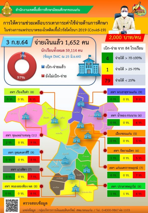 | รายงานการติดตามการให้ความช่วยเหลือบรรเทาภาระค่าใช้จ่ายด้านการศึกษาในช่วงการแพร่ระบาดของโรคติดเชื้อไวรัสโคโรนา 2019 (Covid-19) ของสำนักงานเขตพื้นที่การศึกษามัธยมศึกษาขอนแก่น | |
