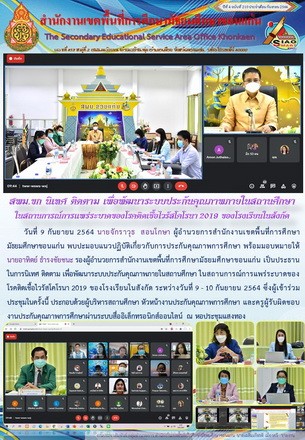 สพม.ขก นิเทศ ติดตาม เพื่อพัฒนาระบบประกันคุณภาพภายในสถานศึกษา ในสถานการณ์การแพร่ระบาดของโรคติดเชื้อไวรัสโคโรนา 2019 ของโรงเรียนในสังกัด