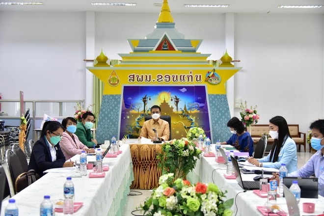 วันที่ 9 กันยายน 2564 นายจักราวุธ สอนโกษา ผู้อำนวยการสำนักงานเขตพื้นที่การศึกษามัธยมศึกษาขอนแก่น พบปะมอบแนวปฏิบัติเกี่ยวกับการประกันคุณภาพการศึกษา พร้อมมอบหมายให้ นายอาทิตย์ ธำรงชัยชนะ รองผู้อำนวยการสำนักงานเขตพื้นที่การศึกษามัธยมศึกษาขอนแก่น เป็นประธานในการนิเทศ ติดตาม เพื่อพัฒนาระบบประกันคุณภาพภายในสถานศึกษา ในสถานการณ์การแพร่ระบาดของโรคติดเชื้อไวรัสโคโรนา 2019 ของโรงเรียนในสังกัด ระหว่างวันที่ 9- 10 กันยายน 2564 ซึ่งผู้เข้าร่วมประชุมในครั้งนี้ ประกอบด้วยผู้บริหารสถานศึกษา หัวหน้างานประกันคุณภาพการศึกษา และครูผู้รับผิดชอบงานประกันคุณภาพการศึกษาผ่านระบบสื่ออิเล็กทรอนิกส์ออนไลน์ ณ หอประชุมแสงทอง |