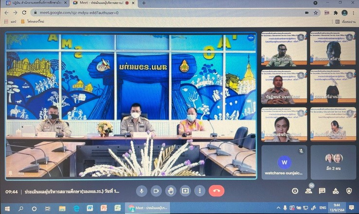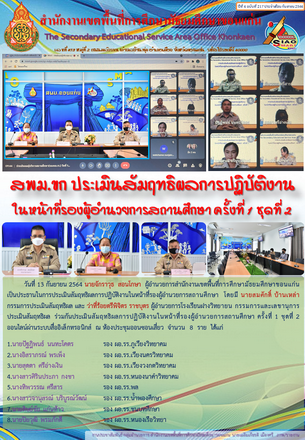 วันที่ 13 กันยายน 2564 นายจักราวุธ สอนโกษา ผู้อำนวยการสำนักงานเขตพื้นที่การศึกษามัธยมศึกษาขอนแก่น เป็นประธานในการประเมินสัมฤทธิผลการปฏิบัติงานในหน้าที่รองผู้อำนวยการสถานศึกษา โดยมี นายสมศักดิ์ บ้านเหล่า กรรมการประเมินสัมฤทธิผล และ ว่าที่ร้อยตรีพิจิตร ราชบุตร ผู้อำนวยการโรงเรียนฝางวิทยายน กรรมการและเลขานุการประเมินสัมฤทธิผล ร่วมกันประเมินสัมฤทธิผลการปฏิบัติงานในหน้าที่รองผู้อำนวยการสถานศึกษา ครั้งที่ 1 ชุดที่ 2 ออนไลน์ผ่านระบบสื่ออิเล็กทรอนิกส์ ณ ห้องประชุมออนซอนเสี่ยว จำนวน 8 ราย ได้แก่