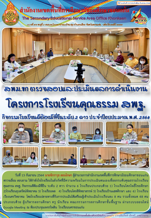 สพม.ขก ตรวจสอบและประเมินผลการดำเนินงานโครงการโรงเรียนคุณธรรม สพฐ. กิจกรรมโรงเรียนดีต้องมีที่ยืนระดับ 2 ดาว ประจำปีงบประมาณ พ.ศ. 2564