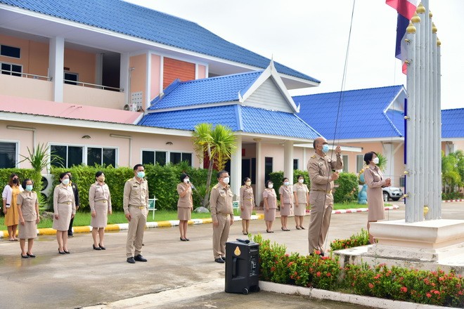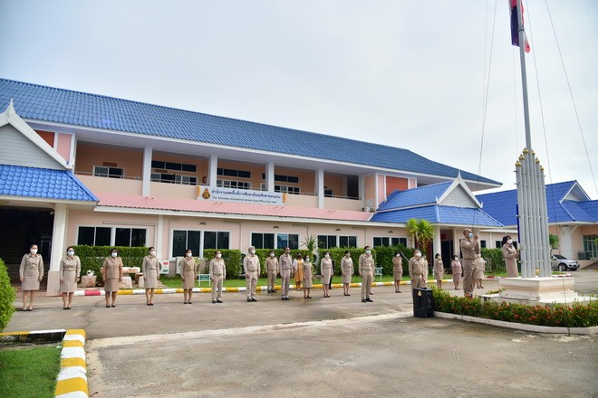 | วันที่ 20 กันยายน 2564 นายจักราวุธ สอนโกษา ผู้อำนวยการสำนักงานเขตพื้นที่การศึกษามัธยมศึกษาขอนแก่น พร้อมด้วย นายสิทธิพล พหลทัพ และนายอาทิตย์ ธำรงชัยชนะ รองสำนักงานเขตพื้นที่การศึกษามัธยมศึกษาขอนแก่น นำบุคลากรในสำนักงานเขตพื้นที่การศึกษามัธยมศึกษาขอนแก่น ร่วมกันเคารพธงชาติ สวดมนต์ไหว้พระ และกล่าวคำปฏิญญาเขตสุจริต พร้อมนี้ นายจักราวุธ สอนโกษา ได้พบปะแจ้งข่าวสารชาว สพม.ขก ณ บริเวณเสาธงหน้าอาคารสำนักงานเขตพื้นที่การศึกษามัธยมศึกษาขอนแก่น | |