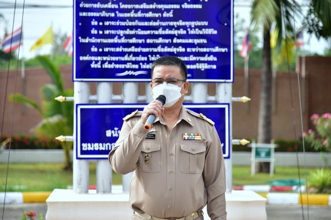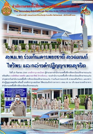 | กลับหน้าหลัก | สพม.ขก ร่วมกันเคารพธงชาติ สวดมนต์ไหว้พระ และกล่าวคำปฏิญญาเขตสุจริต |