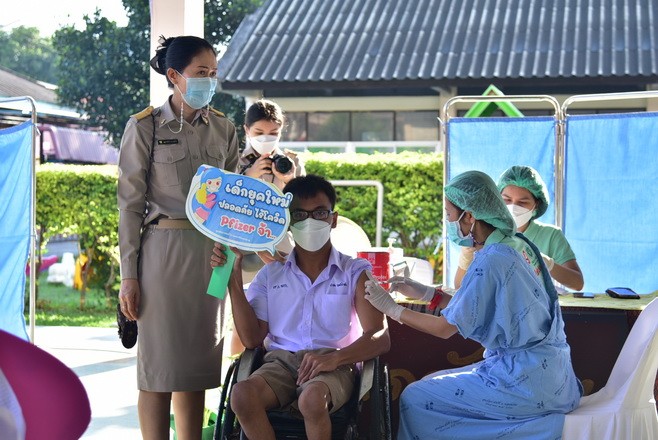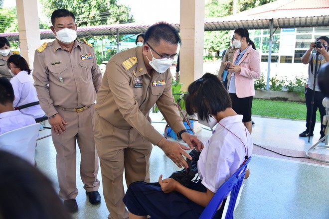 วันที่ 4 ตุลาคม 2564 พลเอกประยุทธ์ จันทร์โอชา นายกรัฐมนตรี เป็นประธานในพิธีเปิด Kick off สร้างเกราะป้องกันด้วยวัคซีน เด็กปลอดภัย เรียนอุ่นใจ ต้อนรับเปิดเทอม เพื่อเป็นการเตรียมความพร้อมเปิดภาคเรียนให้มีความปลอดภัย โดยมีการจัดสรรวัคซีน Pfizer ให้แก่เด็กนักเรียน อายุ 12-18 ปี ทั่วประเทศ ถ่ายทอดสดจากเวทีกลางโรงเรียนพิบูลย์อุปถัมภ์ กรุงเทพมหานคร ซึ่งจังหวัดขอนแก่นได้รับเกียรติจาก ดร.สมศักดิ์ จังตระกุล ผู้ว่าราชการจังหวัดขอนแก่น เป็นประธานในพิธี ณ โรงเรียนศรีสังวาลย์ขอนแก่น นำคณะหน่วยงานด้านการศึกษา หน่วยงานด้านกิจกรรมสาธารณสุขร่วมกันรับชมการถ่ายทอดสดพิธีเปิด จากเวทีกลางโรงเรียนพิบูลย์อุปถัมภ์ โดยมี นายจักราวุธ สอนโกษา ผู้อำนวยการสำนักงานเขตพื้นที่การศึกษามัธยมศึกษาขอนแก่น เข้าร่วมการพิธีเปิดในครั้งนี้ ณ โรงเรียนศรีสังวาลย์ขอนแก่น |