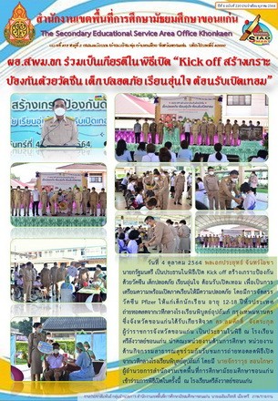 ผอ.สพม.ขก ร่วมเป็นเกียรติในพิธีเปิด “Kick off สร้างเกราะป้องกันด้วยวัคซีน เด็กปลอดภัย เรียนอุ่นใจ ต้อนรับเปิดเทอม”