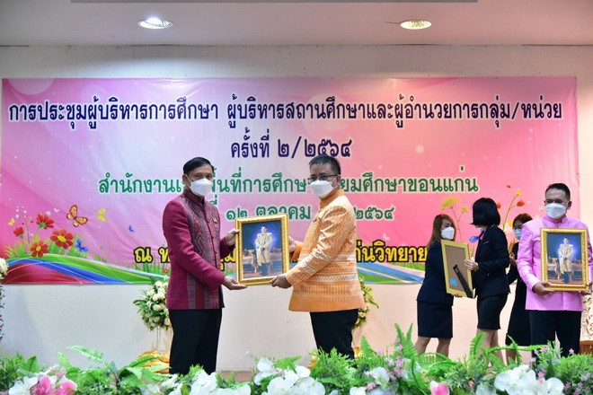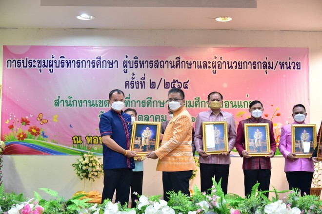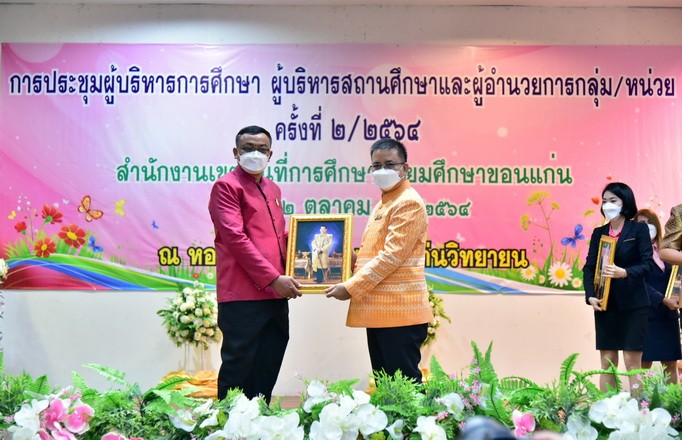 | วันที่ 12 ตุลาคม 2564 นายจักราวุธ สอนโกษา ผู้อำนวยการสำนักงานเขตพื้นที่การศึกษามัธยมศึกษาขอนแก่น แสดงความยินดีกับผู้อำนวยการสถานศึกษา ที่ได้รับคำสั่งย้ายให้ไปดำรงตำแหน่งผู้บริหารสถานศึกษาแห่งใหม่ จำนวน 19 ราย และที่ได้รับการย้ายจากต่างสังกัด ให้ดำรงตำแหน่งผู้อำนวยการสถานศึกษา สังกัดสำนักงานเขตพื้นที่การศึกษามัธยมศึกษาขอนแก่น จำนวน 4 ราย รวมทั้งสิ้นจำนวน 23 ราย ณ หอประชุมโรงเรียนขอนแก่นวิทยายน | |