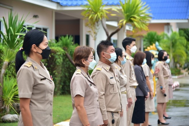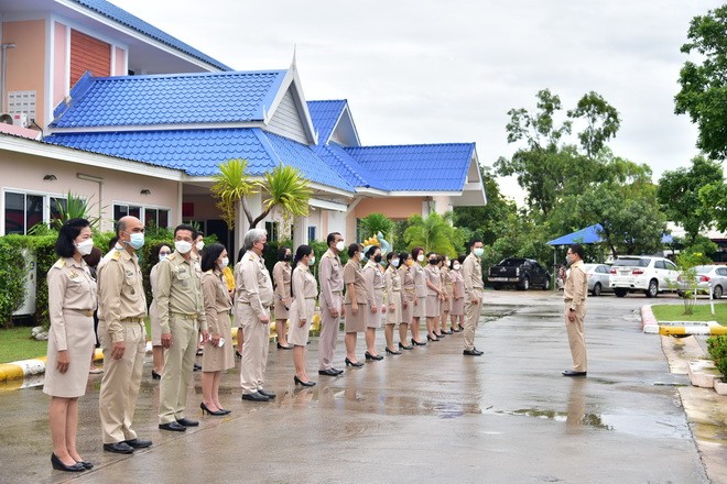 | วันที่ 18 ตุลาคม 2564 ดร.สิทธิพล พหลทัพ รองสำนักงานเขตพื้นที่การศึกษามัธยมศึกษาขอนแก่น พร้อมด้วย ดร.อาทิตย์ ธำรงชัยชนะ รองสำนักงานเขตพื้นที่การศึกษามัธยมศึกษาขอนแก่น นำบุคลากรในสำนักงานเขตพื้นที่การศึกษามัธยมศึกษาขอนแก่น ร่วมกันเคารพธงชาติ สวดมนต์ไหว้พระ และกล่าวคำปฏิญญาเขตสุจริต พร้อมนี้ ดร.สิทธิพล พหลทัพ ได้พบปะแจ้งข่าวสารชาว สพม.ขก ณ บริเวณเสาธงหน้าอาคารสำนักงานเขตพื้นที่การศึกษามัธยมศึกษาขอนแก่น | |