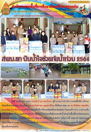 ในโอกาสนี้ สพม.ขก ขอขอบคุณในไมตรีที่ทุกท่านร่วม “ปันน้ำใจช่วยเหลือผู้ประสบภัยน้ำท่วม 2564” ณ สำนักงานเขตพื้นที่การศึกษามัธยมศึกษาขอนแก่น