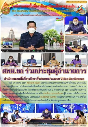 วันที่ 19 ตุลาคม 2564 ดร.อัมพร พินะสา เลขาธิการคณะกรรมการศึกษาขั้นพื้นฐาน ประธานในการประชุมผู้อำนวยการสำนักงานเขตพื้นที่การศึกษาทั่วประเทศ ทางไกลผ่านระบบ Video Conference เพื่อซักซ้อมความเข้าใจในแนวทางการเตรียมการเปิดภาคเรียนที่ 2 ปีการศึกษา 2564 ภายใต้สถานการณ์การแพร่ระบาดของโรคติดเชื้อไวรัสโคโรนา 2019 ซึ่ง นายจักราวุธ สอนโกษา ผู้อำนวยการสำนักงานเขตพื้นที่การศึกษามัธยมศึกษาขอนแก่น มอบหมายให้ ดร.สิทธิพล พหลทัพ รองผู้อำนวยการสำนักงานเขตพื้นที่การศึกษามัธยมศึกษาขอนแก่น เข้าร่วมการประชุมในครั้งนี้ ณ ห้องประชุมออนซอนเสี่ยว |