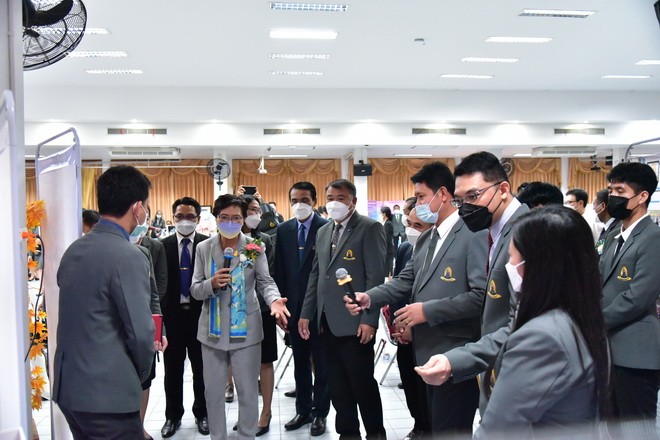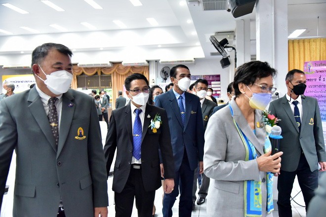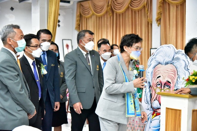 วันที่ 20 ตุลาคม 2564 ดร.คุณหญิงกัลยา โสภณพนิช รัฐมนตรีช่วยว่าการกระทรวงศึกษาธิการ พร้อมคณะลงพื้นที่ขอนแก่น ติดตามเยี่ยมชมการดำเนินงานการจัดการเรียนการสอน การยกระดับคุณภาพการศึกษาด้วยห้องเรียน Smart Classroom ของโรงเรียนขอนแก่นวิทยายน และได้กล่าวชื่นชมการจัดการเรียนการสอนออนไลน์ การเตรียมความพร้อมในการเปิดเรียนภาคเรียนที่ 2/2564 ว่ามีการเตรียมความพร้อมได้อย่างดีเยี่ยม ซึ่งนายจักราวุธ สอนโกษา ผู้อำนวยการสำนักงานเขตพื้นที่การศึกษามัธยมศึกษาขอนแก่น มอบหมายให้ ดร.สิทธิพล พหลทัพ รองผู้อำนวยการสำนักงานเขตพื้นที่การศึกษามัธยมศึกษาขอนแก่น ร่วมให้การต้อนรับ พร้อมนี้ นายศักดาเดช ทาซ้าย ผู้อำนวยการเชี่ยวชาญโรงเรียนขอนแก่นวิทยายน นำคณะให้การต้อนรับ พร้อมนำเยี่ยมชมนิทรรศการของโรงเรียนขอนแก่นวิทยายน ณ หอประชุมโรงเรียนขอนแก่นวิทยายน |