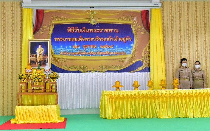 วันที่ 29 ตุลาคม 2564 ที่ห้องประชุมแสงทอง สำนักงานเขตพื้นที่การศึกษามัธยมศึกษาขอนแก่น ดร.สิทธิพล พหลทัพ รองผู้อำนวยการสำนักงานเขตพื้นที่การศึกษาขอนแก่น เป็นประธานในพิธีมอบเงินพระราชทานของพระบาทสมเด็จพระวชิรเกล้าเจ้าอยู่หัว รัชกาลที่ 10 ที่ทรงมีพระมหากรุณาธิคุณพระราชทานเงินส่วนพระองค์ เพื่อให้ความช่วยเหลือสถานศึกษาที่ให้ความร่วมมือกับหน่วยงานต่างๆปรับสถานศึกษาเป็นโรงพยาบาลสนาม หรือสถานที่กักตัว หรือศูนย์พักคอยให้แก่ผู้ป่วยโรคโควิด-19 ซึ่งหลังจากภารกิจเป็นโรงพยาบาลสนาม หรือสถานที่กักตัว หรือศูนย์พักคอยแล้วเสร็จ เมื่อมีการส่งมอบคืนพื้นที่แล้ว สถานศึกษาแค่ละแห่งอาจมีภาระต้องชำระค่าสาธารณูปโภคและค่าใช้จ่ายซ่อมแซม ปรับปรุงอาคารให้กลับคืนสู่ภาพเดิม เพื่อจัดการเรียนการสอน โดยให้เป็นไปตามหลักเกณฑ์การจัดสรรเงินและแนวทางการดำเนินงานในการใช้จ่ายเงินพระราชทานของพระบาทสมเด็จพระวชิรเกล้าเจ้าอยู่หัว กำหนดและการอนุมัติจ่ายเงินหรือก่อหนี้ผูกพันและการเก็บรักษาเอกสารหลักฐานประกอบการเบิกจ่ายให้ปฏิบัติตามระเบียบกระทรวงศึกษาธิการ ว่าด้วยการรับเงินหรือทรัพย์สินที่มีผู้บริจาคให้แก่สถานศึกษา พ.ศ. 2552