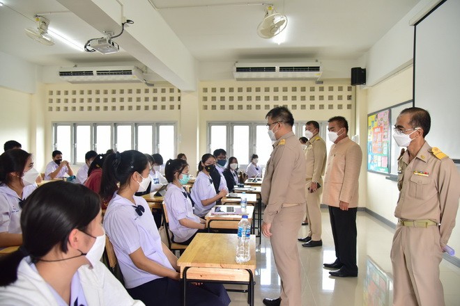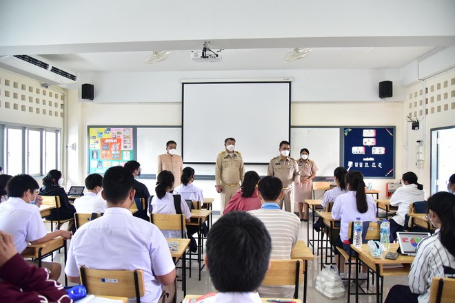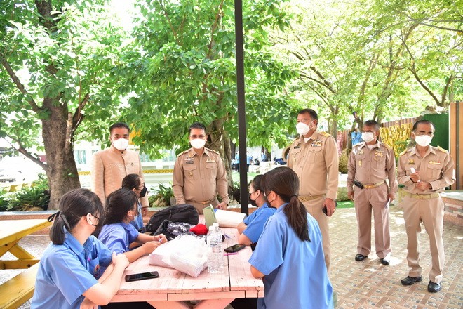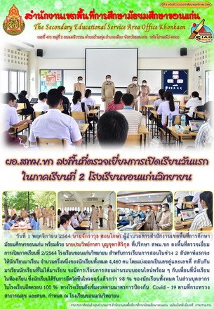 วันที่ 1 พฤศจิกายน 2564 นายจักราวุธ สอนโกษา ผู้อำนวยการสำนักงานเขตพื้นที่การศึกษามัธยมศึกษาขอนแก่น พร้อมด้วย นายประวิทย์กาสา บุญจุฑาสิริกุล ที่ปรึกษา สพม.ขก ลงพื้นที่ตรวจเยี่ยมการเปิดภาคเรียนที่ 2/2564 โรงเรียนขอนแก่นวิทยายน สำหรับการเรียนการสอนในช่วง 2 สัปดาห์แรกจะให้นักเรียนมาเรียน จำนวนครึ่งหนึ่งของนักเรียนทั้งหมด 4,460 คน โดยแบ่งออกเป็นเลขคู่และเลขคี่ สลับกันมาเรียนนักเรียนที่ไม่ได้มาเรียน จะมีการเรียนการสอนผ่านระบบออนไลน์พร้อม ๆ กับเพื่อนที่นั่งเรียนในห้องเรียน ซึ่งนักเรียนได้รับการฉีดวัคซีนไฟเซอร์แล้วกว่า 98 % ของนักเรียนทั้งหมด ในส่วนบุคลากรในโรงเรียนฉีดครอบ 100 % ทางโรงเรียนยังเข้มงวดตามมาตรการป้องกัน Covid – 19 ตามที่กระทรวงสาธารณสุข และศบค. กำหนด ณ โรงเรียนขอนแก่นวิทยายน |