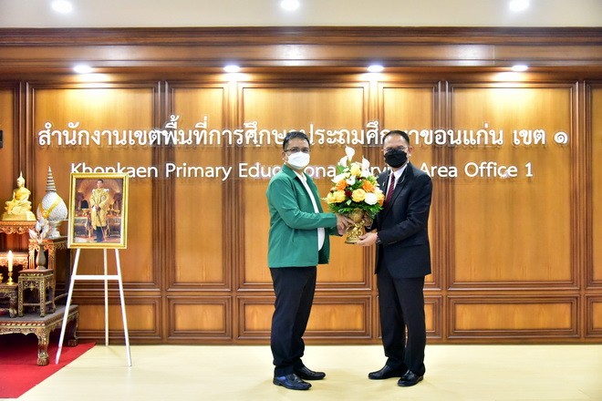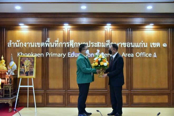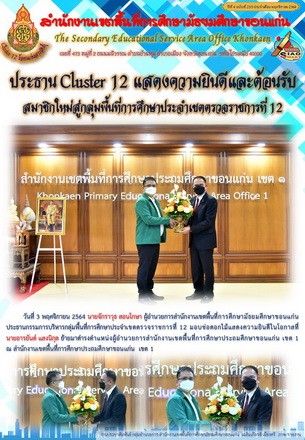 | วันที่ 3 พฤศจิกายน 2564 นายจักราวุธ สอนโกษา ผู้อำนวยการสำนักงานเขตพื้นที่การศึกษามัธยมศึกษาขอนแก่น ประธานกรรมการบริหารกลุ่มพื้นที่การศึกษาประจำเขตตรวจราชการที่ 12 มอบช่อดอกไม้แสดงความยินดีในโอกาสที่ นายอารยันต์ แสงนิกุล ย้ายมาดำรงตำแหน่งผู้อำนวยการสำนักงานเขตพื้นที่การศึกษาประถมศึกษาขอนแก่น เขต 1 ณ สำนักงานเขตพื้นที่การศึกษาประถมศึกษาขอนแก่น เขต 1 | |