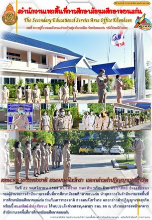 | กลับหน้าหลัก | สพม.ขก เคารพธงชาติ สวดมนต์ไหว้พระ และกล่าวคำปฏิญญาเขตสุจริต |