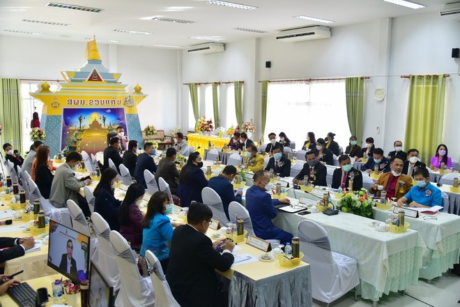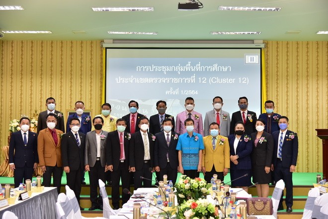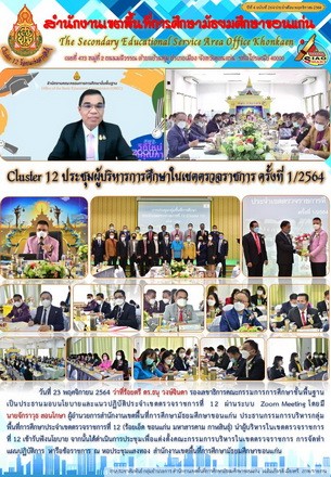 วันที่ 23 พฤศจิกายน 2564 ที่หอประชุมแสงทอง สำนักงานเขตพื้นที่การศึกษามัธยมศึกษาขอนแก่น ได้จัดให้การประชุมกลุ่มพื้นที่การศึกษา ประจำเขตตรวจราชการที่ 12 (Cluster 12) ครั้งที่ 1/2564 โดยมีนายจักราวุธ สอนโกษา ผอ.สพม.ขอนแก่น ประธานคลัสเตอร์ 12 เป็นประธาน ซึ่งผู้เข้าร่วมประชุมครั้งนี้ ประกอบด้วย ผอ.สพป./สพม. รอง ผอ.สพป./สพม. ที่ดูแลรับผิดชอบกลุ่มนโยบายและแผน และผู้อำนวยการกลุ่มนโยบายและแผน จากสำนักงานเขตพื้นที่การศึกษาประถมศึกษา/มัธยมศึกษา ในจังหวัดร้อยเอ็ด ขอนแก่น มหาสารคามและกาฬสินธุ์ จำนวน 18 เขตพื้นที่การศึกษา เข้าร่วมประชุมในครั้งนี้ โดยมีวาระที่สำคัญคือการคัดเลือกและแต่งตั้งคณะกรรมการบริหารกลุ่มพื้นที่การศึกษา ประจำเขตตรวจราชการที่ 12 การจัดทำแผนปฏิบัติการเพื่อขับเคลื่อนงานของ Cluster12 โดยก่อนเริ่มการประชุม ในระหว่างเวลา 09.00 - 10.00 น. ได้รับเกียรติจากว่าที่ร้อยตรี ดร.ธนุ วงษ์จินดา รองเลขาธิการคณะกรรมการการศึกษาขั้นพื้นฐาน ให้เกียรติมอบนโยบายการจัดการศึกษาภายใต้สถานการณ์แพร่ระบาดของโรค Covid 19 และกระแสการ Disruption แก่ผู้บริหารของกลุ่มพื้นที่การศึกษา ประจำเขตตรวจราชการที่ 12 ด้วยระบบการประชุมทางไกลผ่าน Zoom