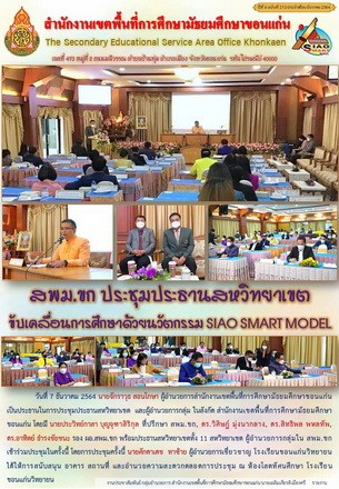วันที่ 7 ธันวาคม 2564 นายจักราวุธ สอนโกษา ผู้อำนวยการสำนักงานเขตพื้นที่การศึกษามัธยมศึกษาขอนแก่น เป็นประธานในการประชุมประธานสหวิทยาเขต และผู้อำนวยการกลุ่ม ในสังกัด สำนักงานเขตพื้นที่การศึกษามัธยมศึกษาขอนแก่น โดยมี นายประวิทย์กาสา บุญจุฑาสิริกุล ที่ปรึกษา สพม.ขก, ดร.วิศิษฎ์ มุ่งนากลาง, ดร.สิทธิพล พหลทัพ, ดร.อาทิตย์ ธำรงชัยชนะ รอง ผอ.สพม.ขก พร้อมประธานสหวิทยาเขตทั้ง 11 สหวิทยาเขต ผู้อำนวยการกลุ่มใน สพม.ขก เข้าร่วมประชุมในครั้งนี้ โดยการประชุมครั้งนี้ นายศักดาเดช ทาซ้าย ผู้อำนวยการเชี่ยวชาญ โรงเรียนขอนแก่นวิทยายน ได้ให้การสนับสนุน อาคาร สถานที่ และอำนวยความสะดวกตลอดการประชุม ณ ห้องโสตทัศนศึกษา โรงเรียนขอนแก่นวิทยายน |