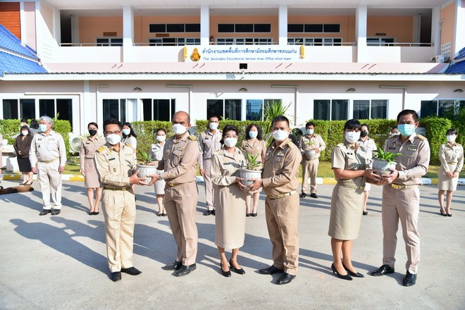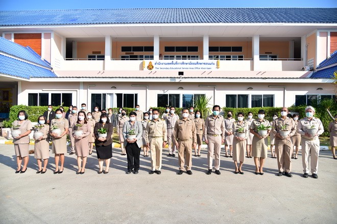 วันที่ 20 ธันวาคม 2564 นายจักราวุธ สอนโกษา ผู้อำนวยการสำนักงานเขตพื้นที่การศึกษามัธยมศึกษาขอนแก่น พร้อมด้วย ดร.สิทธิพล พหลทัพ ดร.อาทิตย์ ธำรงชัยชนะ รองผู้อำนวยการสำนักงานเขตพื้นที่การศึกษามัธยมศึกษาขอนแก่น นำบุคลากรในสำนักงานเขตพื้นที่การศึกษามัธยมศึกษาขอนแก่น ร่วมกันเคารพธงชาติ สวดมนต์ไหว้พระ และกล่าวคำปฏิญญาเขตสุจริต ในโอการนี้ นางสุกัญญา อนรรฆพันธุ์ ผู้อำนวยการกลุ่มนิเทศ ติดตาม และประเมินผลการจัดการศึกษา ได้กล่าวอำลาชาว สพม.ขก ในโอกาสที่ปฏิบัติหน้าที่ราชการเป็นวันสุดท้าย จากนั้นคณะผู้บริหารให้เกียรติมอบต้นไม้ที่ระลึกแก่บุคลากรในสำนักงานในโอกาสวันคล้ายวันเกิด เพื่อเป็นขวัญกำลังใจในการปฏิบัติหน้าที่ราชการต่อไป ณ บริเวณเสาธงหน้าอาคารสำนักงานเขตพื้นที่การศึกษามัธยมศึกษาขอนแก่น |