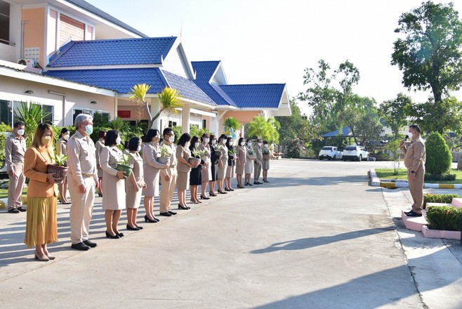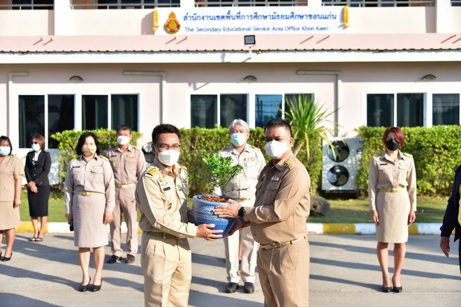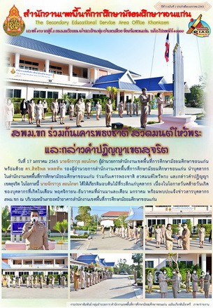 วันที่ 17 มกราคม 2565 นายจักราวุธ สอนโกษา ผู้อำนวยการสำนักงานเขตพื้นที่การศึกษามัธยมศึกษาขอนแก่น พร้อมด้วย ดร.สิทธิพล พหลทัพ รองผู้อำนวยการสำนักงานเขตพื้นที่การศึกษามัธยมศึกษาขอนแก่น นำบุคลากรในสำนักงานเขตพื้นที่การศึกษามัธยมศึกษาขอนแก่น ร่วมกันเคารพธงชาติ สวดมนต์ไหว้พระ และกล่าวคำปฏิญญาเขตสุจริต ในโอกาสนี้ นายจักราวุธ สอนโกษา ได้ให้เกียรติมอบต้นไม้ที่ระลึกแก่บุคลากร เนื่องในโอกาสวันคล้ายวันเกิดของบุคลากรที่เกิดในเดือนพฤศจิกายน - ธันวาคมที่ผ่านมาและเดือนมกราคม พร้อมพบปะแจ้งข่าวสารบุคลากร สพม.ขก ณ บริเวณหน้าเสาธงหน้าอาคารสำนักงานเขตพื้นที่การศึกษามัธยมศึกษาขอนแก่น |