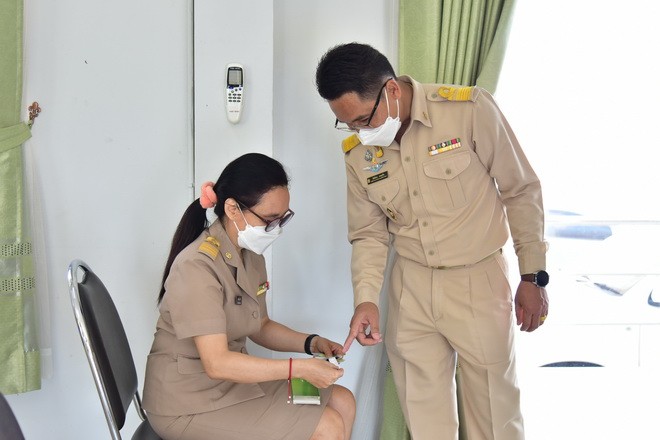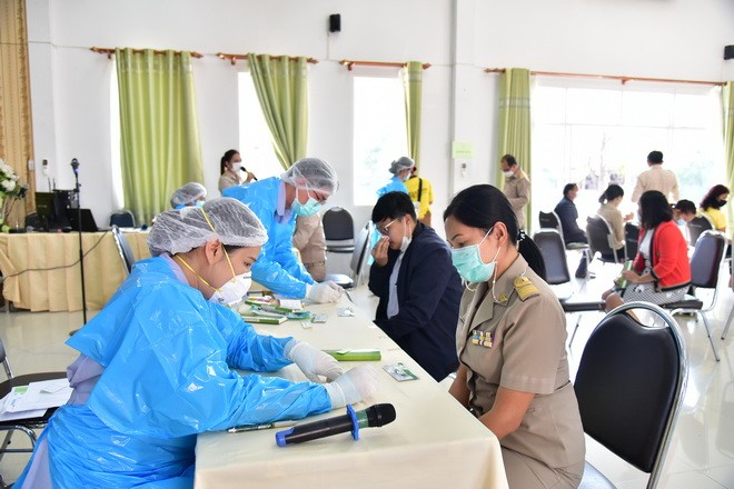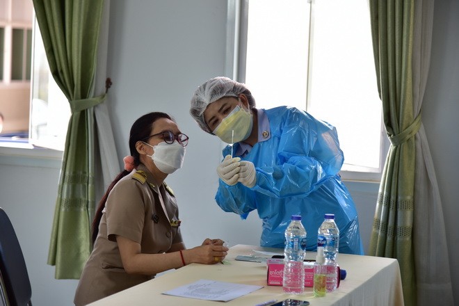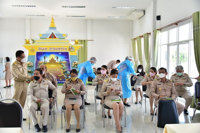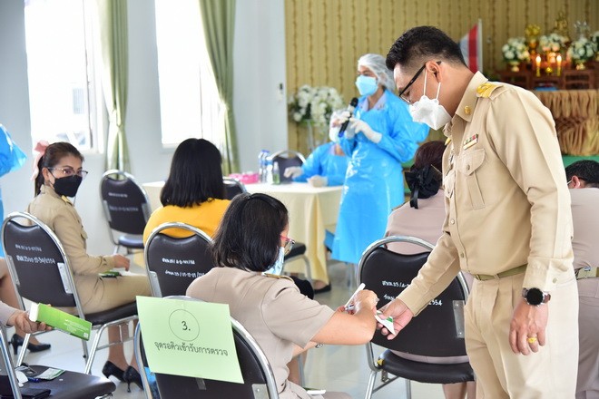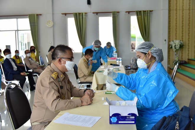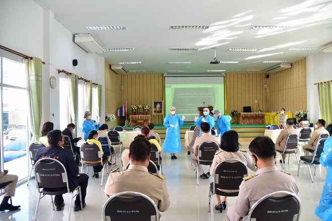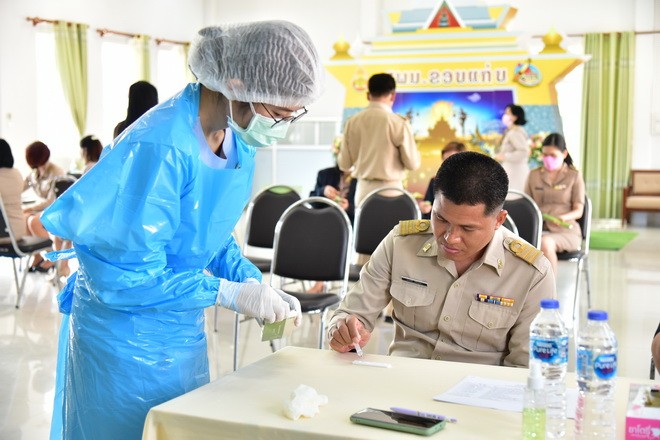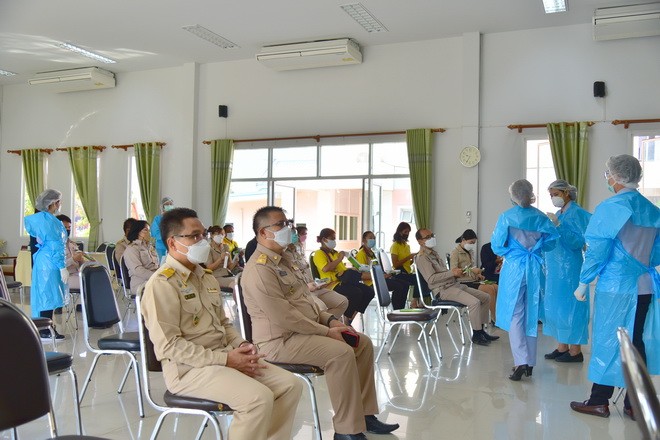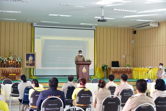 วันที่ 17 มกราคม 2565 นายจักราวุธ สอนโกษา ผู้อำนวยการสำนักงานเขตพื้นที่การศึกษามัธยมศึกษาขอนแก่น พร้อมด้วย ดร.สิทธิพล พหลทัพ รองผู้อำนวยการสำนักงานเขตพื้นที่การศึกษามัธยมศึกษาขอนแก่น นำบุคลากรในสำนักงานเขตพื้นที่การศึกษามัธยมศึกษาขอนแก่น เข้ารับการตรวจหาเชื้อไวรัสโคโรนา 2019 ด้วยชุดตรวจ ATK ซึ่งคณะบุคลากรของวิทยาลัยพยาบาลบรมราชชนนี ขอนแก่น ได้ให้ความอนุเคราะห์มาให้บริการตรวจหาเชื้อไวรัสโคโรนา 2019 ณ หอประชุมแสงทอง โดยผลตรวจบุคลากรในสำนักงานเขตพื้นที่การศึกษามัธยมศึกษาขอนแก่นครั้งนี้ไม่พบผู้ติดเชื้อไวรัสโคโรนา 2019 |