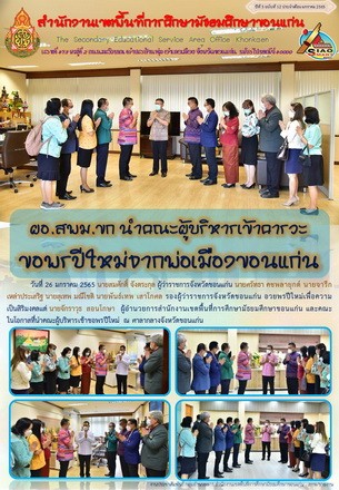 | กลับหน้าหลัก | ผอ.สพม.ขก นำคณะผู้บริหารเข้าคารวะขอพรปีใหม่จากพ่อเมืองขอนแก่น |