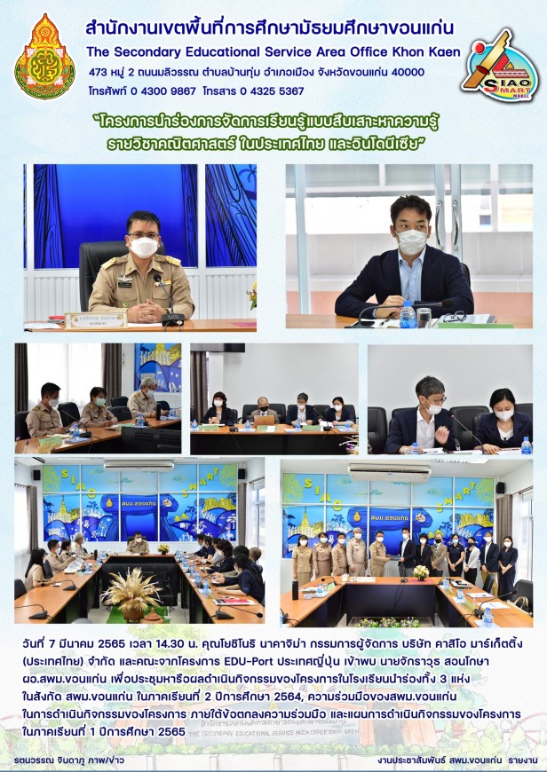 ความร่วมมือของสพม.ขอนแก่น ในการดำเนินกิจกรรมของโครงการ