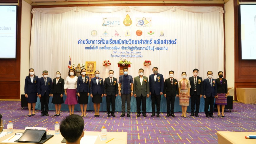 วันพุธที่ 22 มิถุนายน 2565 เวลา 08.30 น. นายจักราวุธ สอนโกษา ผู้อำนวยการสำนักงานเขตพื้นที่การศึกษามัธยมศึกษาขอนแก่น เป็นประธานพิธีเปิดค่ายวิชาการห้องเรียนพิเศษวิทยาศาสตร์ คณิตศาสตร์ เทคโนโลยีและสิ่งแวดล้อม กลุ่มเครือข่ายภาคตะวันออกเฉียงเหนือตอนบนจังหวัดคู่ขนานขอนแก่น-กาฬสินธุ์ ระหว่างวันที่ 22-23 มิถุนายน พ.ศ. 2565 ณ โรงแรมเจริญธานี ขอนแก่น โดยมี นายศักดาเดช ทาซ้าย ผู้อำนวยการเชี่ยวชาญโรงเรียนขอนแก่นวิทยายน เป็นผู้กล่าวรายงานและมีนักเรียนระดับชั้น ม.5 เข้าร่วมทั้งหมด 7 โรงเรียน ได้แก่ โรงเรียนกัลยาณวัตร โรงเรียนกาญจนาภิเษกวิทยาลัย กาฬสินธุ์ โรงเรียนกาฬสินธุ์พิทยาสรรพ์ โรงเรียนแก่นนครวิทยาลัย โรงเรียนชุมแพศึกษา โรงเรียนอนุกูลนารี และโรงเรียนขอนแก่นวิทยายน