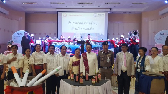 เช้าวันนี้ อังคารที่ 26 มิ.ย.61 ดร.อดิศักดิ์ มุ่งชู ผู้อำนวยการ สำนักงานเขตพื้นที่การศึกษามัธยมศึกษาเขต 25 เป็นประธานเปิดงานในกิจกรรม “เทเหล้า เผาบุหรี่” ซึ่งวันนี้ก็นับว่าเป็นวันสำคัญถึง 2 โอกาส คือ วันสุนทรภู่และวันต่อต้านยาเสพติดโลก โดยมีวัตถุประสงค์เพื่อเป็นการสร้างความตระหนัก ถึงพิษภัยร้ายของบุหรี่ สุรา ยาเสพติดและอบายมุขต่างๆ ซึ่งกิจกรรม เทเหล้าเผาบุหรี่ เป็นส่วนหนึ่งจากหลายกิจกรรมของโครงการสถานศึกษาสีขาวที่โรงเรียนนครขอนแก่นได้ดำเนินการอย่างเข้มข้นมาโดยตลอด เพื่อให้นักเรียนได้แสดงพลังตั้งปฏิญาณอันแน่วแน่ในการต่อสู้ทำลายล้างสิ่งเสพติดและอบายมุขทุกชนิดผ่านกิจกรรม เทเหล้าเผาบุหรี่ เพื่อเป็นการแสดงออกถึงการร่วมมือร่วมพลังในการต่อสู้เอาชนะยาเสพติด ทั้งในสถานศึกษาและหน่วยงานอื่นที่เกี่ยวข้อง ภายใต้กรอบแนวคิด คำขวัญที่ว่า “ไทยนิยม ยั่งยืน ร่วมแก้ปัญหายาเสพติด” ณ หอประชุมโรงเรียนนครขอนแก่น นายสุปัน สายสินธุ์ สพม. 25 ภาพ/รายงาน บรรณาธิการข่าว : ดร.เบญจมาศ ฦๅชา รองผู้อำนวยการ สพม.25 26/6/61 |