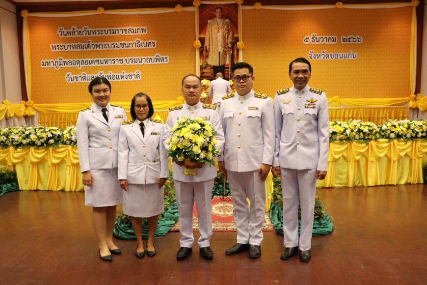 วันที่ 5 ธันวาคม 2566 ดร. ศักดา ชัยภัย ผอ.สพม.ขอนแก่น มอบหมายให้ นายปฐมพงษ์ สมอฝาก รอง ผอ.สพม.ขอนแก่น พร้อมด้วยข้าราชการและบุคลากร กลุ่มนิเทศ ติดตามและประเมินผลการจัดการศึกษา กลุ่มอำนวยการ กลุ่มกฏหมายและคดี หน่วยตรวจสอบภายใน กลุ่มบริหารการเงินและสินทรัพย์ ร่วมจัดกิจกรรมเนื่องในวันคล้ายวันพระราชสมภพ พระบาทสมเด็จพระบรมชนกาธิเบศร มหาภูมิพลอดุลยเดชมหาราช บรมนาถบพิตร วันชาติและวันพ่อแห่งชาติ 5 ธันวาคม 2566