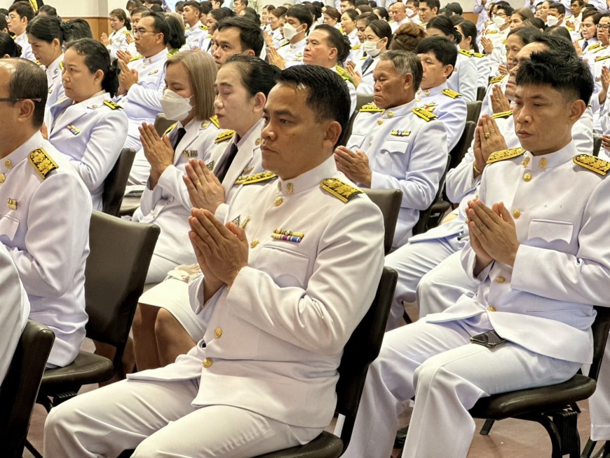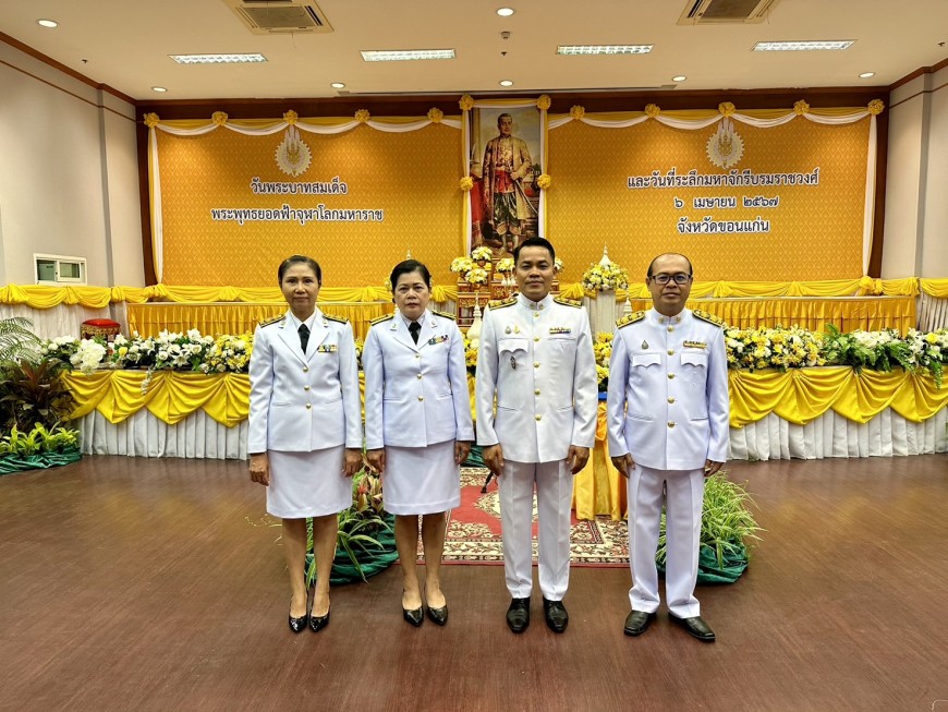 | วันที่ 6 เมษายน 2567 เวลา 06.00 น. ดร.ศักดา ชัยภัย ผอ.สพม.ขอนแก่น มอบหมาย ดร.ทวีศักดิ์ สมนอก รอง ผอ.สพม.ขอนแก่น พร้อมด้วยข้าราชการและบุคลากรทางการศึกษา กลุ่มส่งเสริมการจัดการศึกษา กลุ่มกฎหมายและคดี และกลุ่มส่งเสริมการศึกษาทางไกลเทคโนโลยีสารสนเทศและการสื่อสาร ร่วมวางพานพุ่มดอกไม้สดถวายราชสักการะเนื่องในวันรัฐพิธี "วันพระบาทสมเด็จพระพุทธยอดฟ้าจุฬาโลกมหาราช และที่ระลึกมหาจักรีบรมราชวงศ์ ณ ห้องประชุมแก่นเมือง ศาลากลางจังหวัดขอนแก่น โดยมี นายไกรสร กองฉลาด ผู้ว่าราชการจังหวัดขอนแก่น เป็นประธานในพิธี | |