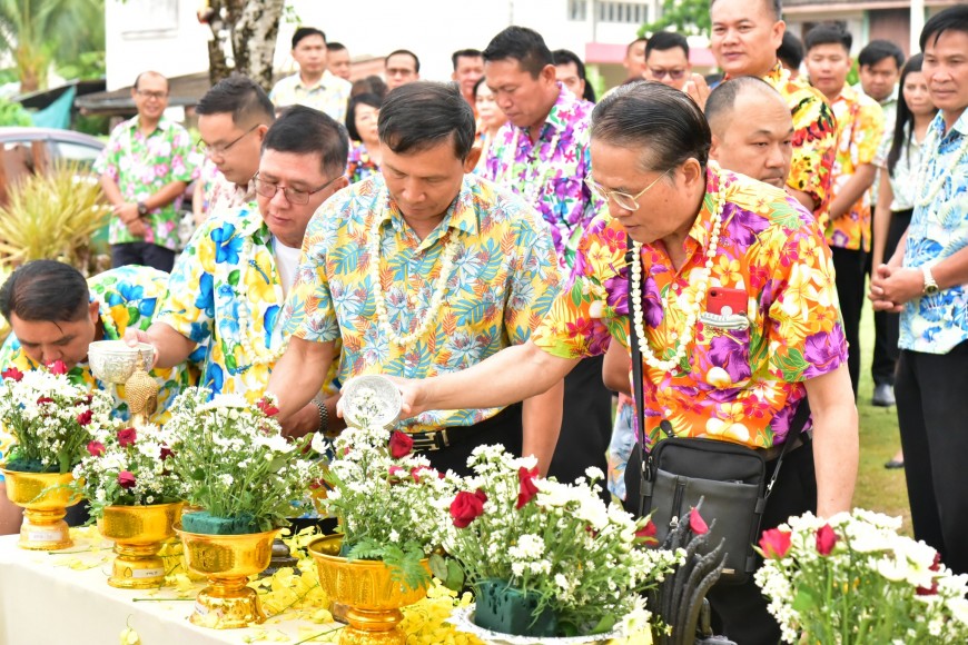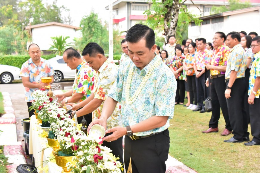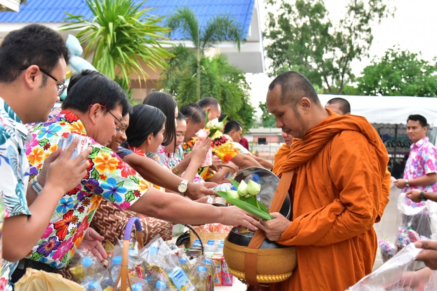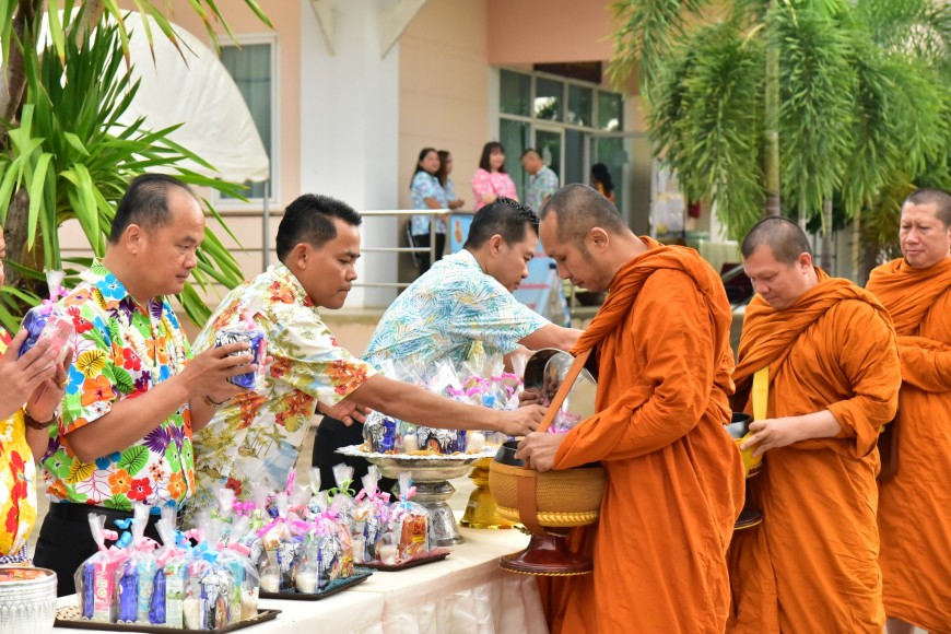 เช้าวันนี้ (10 เมษายน 2567) ที่สำนักงานเขตพื้นที่การศึกษามัธยมศึกษาขอนแก่น ดร.ศักดา ชัยภัย ผอ.สพม.ขอนแก่น นำคณะผู้บริหาร เจ้าหน้าที่ และบุคลากรทางการศึกษา ทำบุญตักบาตรข้าวสารอาหารแห้ง แด่พระสงฆ์ จำนวน 9 รูป เนื่องในเทศกาลสงกรานต์ เพื่อสืบสานประเพณีและอนุรักษ์วัฒนธรรมไทยที่ดีงาม พร้อมทั้งพิธีสรงน้ำพระพุทธแก่นนคร เพื่อความเป็นสิริมงคลร่มเย็นแก่ข้าราชการในสังกัด โดยมีผู้บริหารเขต ผอ.กลุ่ม/หน่วย ผู้บริหารสถานศึกษา และเจ้าหน้าที่เข้าร่วมพิธีโดยพร้อมเพรียงกัน