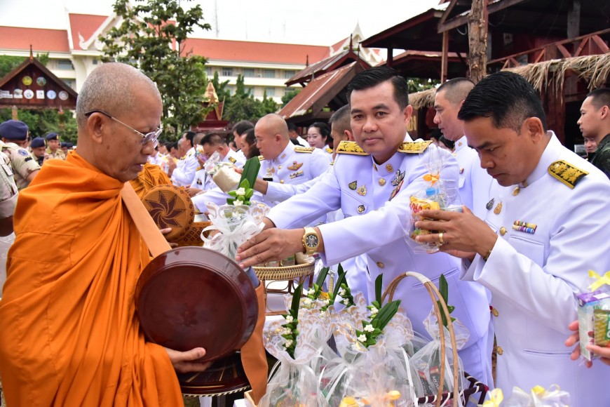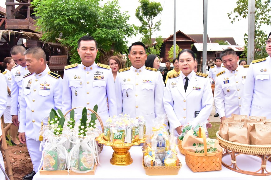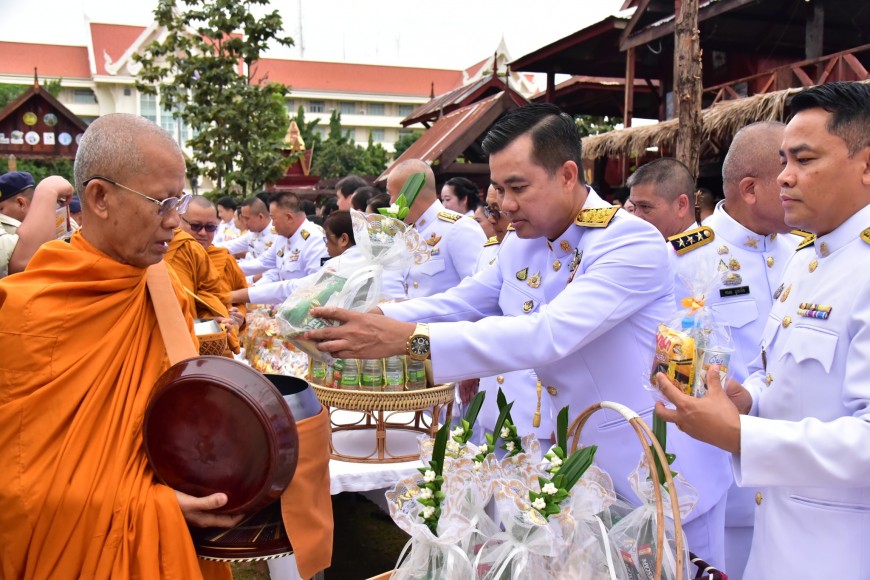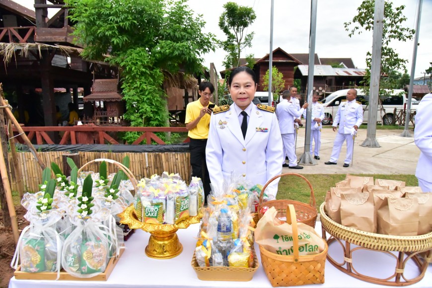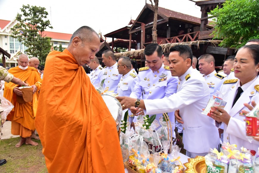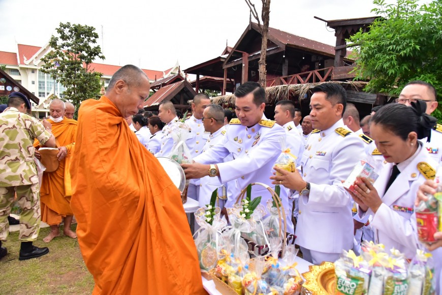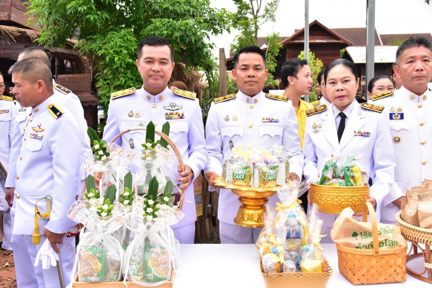 และร่วมพิธีทำบุญตักบาตรถวายพระราชกุศล ณ บริเวณเฮือนโบราณ