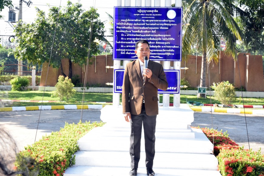 | วันจันทร์ที่ 7 ตุลาคม 2567 เวลา 08.30 น. ดร.ศักดา ชัยภัย ผอ.สพม.ขอนแก่น มอบหมายให้ ดร.ทวีศักดิ์ สมนอกรอง ผอ.สพม.ขอนแก่น พร้อมด้วยผอ.กลุ่ม/หน่วย และบุคลากรในสังกัด ดำเนินกิจกรรมเข้าแถวเคารพธงชาติ สวดมนต์ไหว้พระ และกล่าวคำปฏิญญาเขตสุจริต ณ หน้าเสาธง สำนักงานเขตพื้นที่การศึกษามัธยมศึกษาขอนแก่น พร้อมกล่าวให้โอวาทแก่บุคลากรที่ได้ย้ายมาปฏิบัติหน้าที่ใหม่ จำนวน 2 คน โดยให้คำแนะนำเกี่ยวกับการปฏิบัติเป็นข้าราชการที่ดี | |