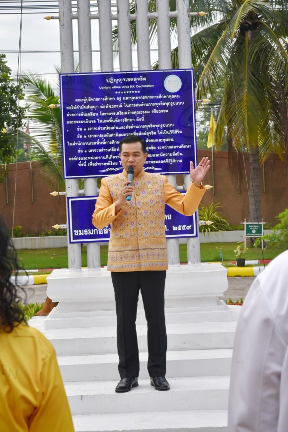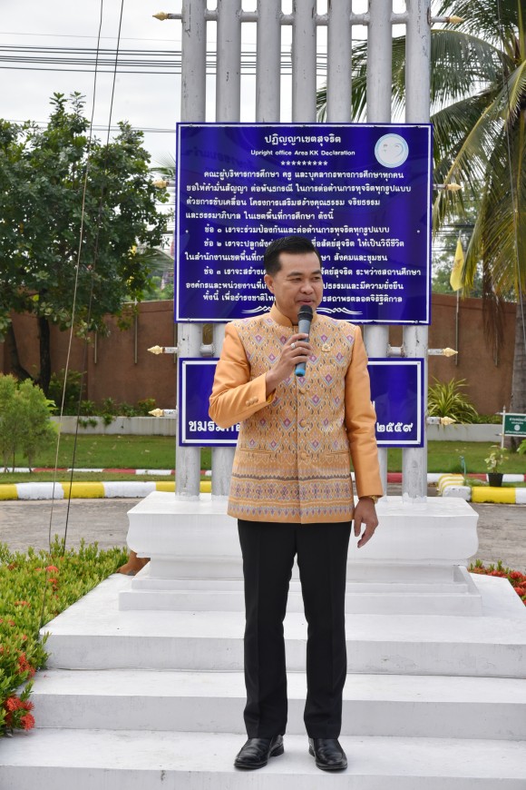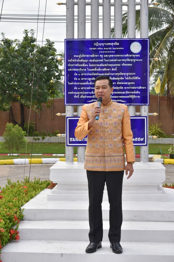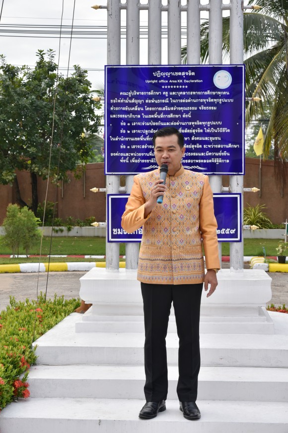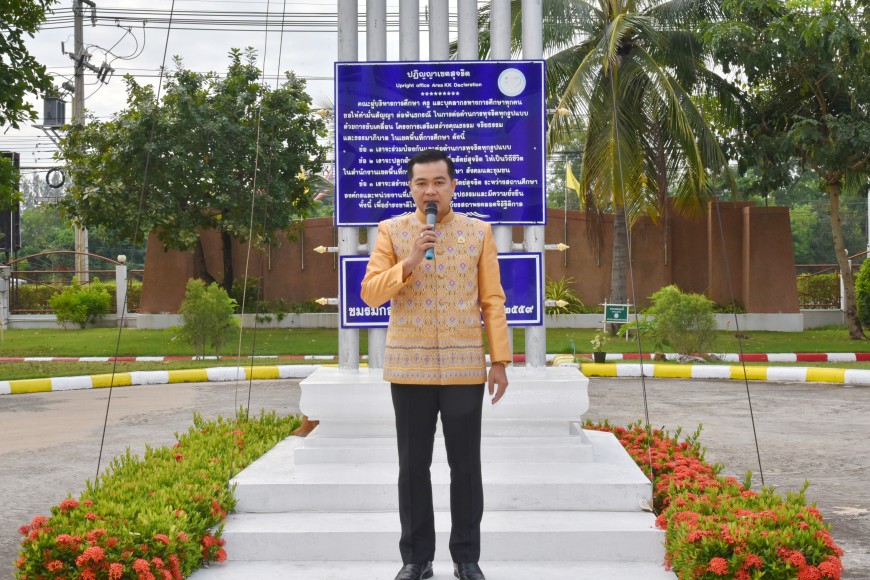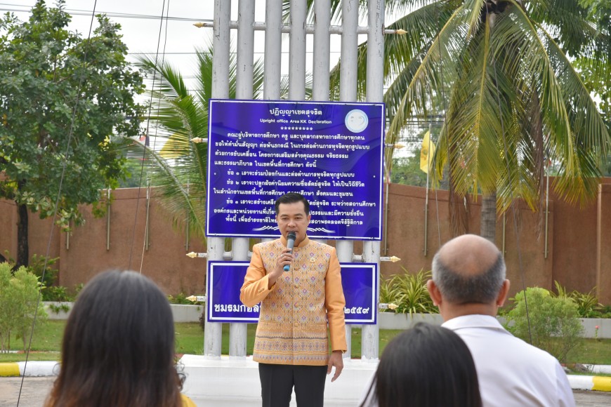| วันจันทร์ที่ 4 พฤศจิกายน 2567 เวลา 08.30 น. ดร.ศักดา ชัยภัย ผอ.สพม.ขอนแก่น พร้อมด้วย ดร.ทวีศักดิ์ สมนอก รอง ผอ.สพม.ขอนแก่น ผอ.กลุ่ม/หน่วย และบุคลากรในสังกัด ดำเนินกิจกรรมเข้าแถวเคารพธงชาติ สวดมนต์ไหว้พระ และกล่าวคำปฏิญญาเขตสุจริต ณ หน้าเสาธง สำนักงานเขตพื้นที่การศึกษามัธยมศึกษาขอนแก่น พร้อมกล่าว ให้โอวาทแก่บุคลากรเกี่ยวกับการปฏิบัติเป็นข้าราชการที่ดี | |