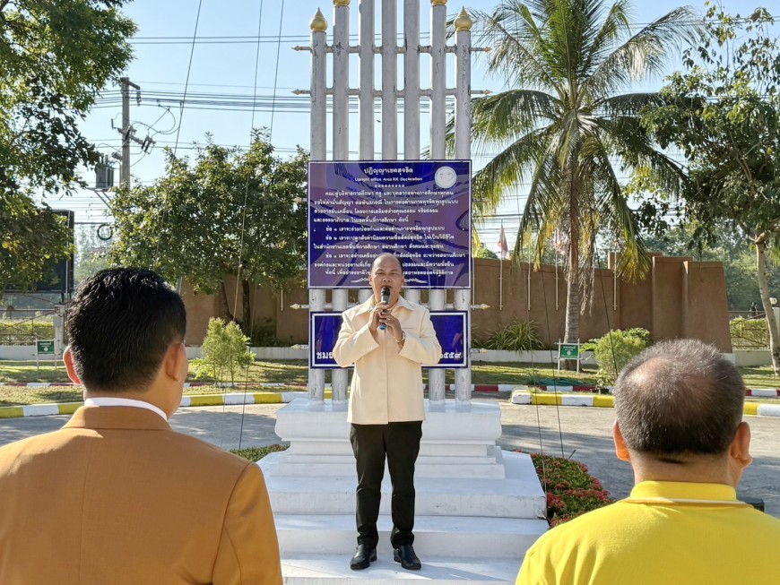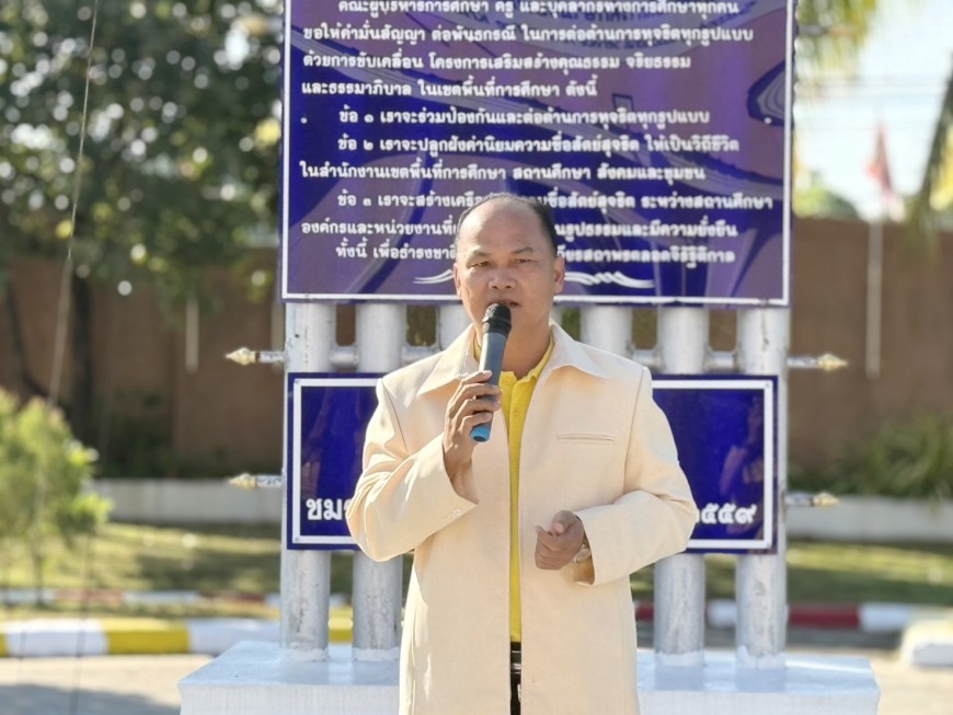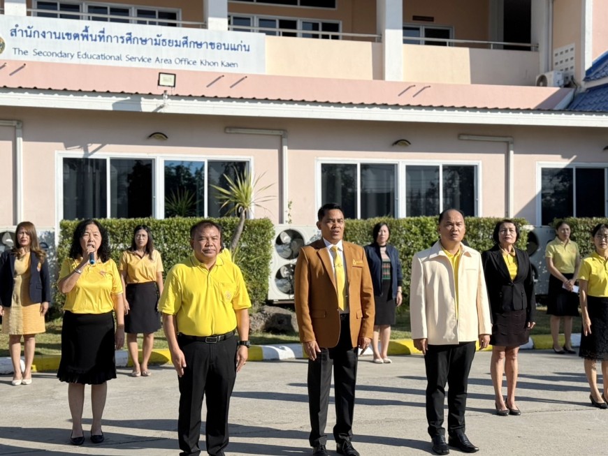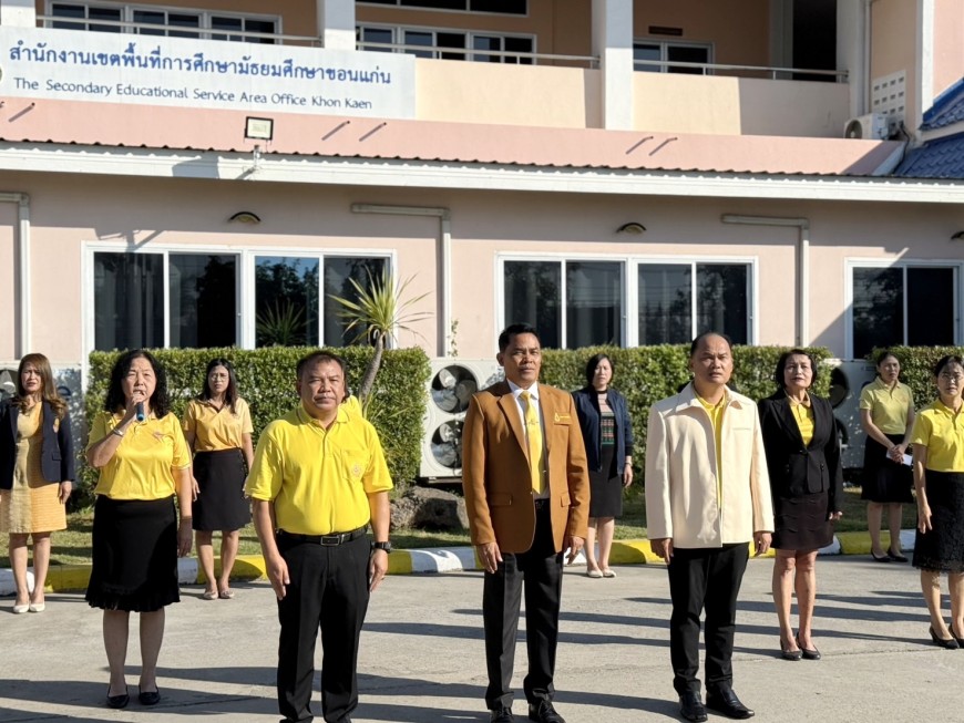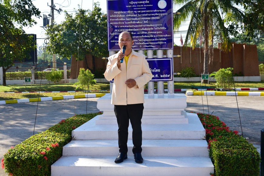 | นจันทร์ที่ 2 ธันวาคม 2567 เวลา 08.30 น. ดร.ศักดา ชัยภัย ผอ.สพม.ขอนแก่น มอบหมายให้ ดร.ทวีศักดิ์ สมนอก ดร.ปฐมพงษ์ สมอฝาก ดร.สุเนตร์ ทองโพธิ์ รอง ผอ.สพม.ขอนแก่น พร้อมด้วยผอ.กลุ่ม/หน่วย และบุคลากรในสังกัด ดำเนินกิจกรรมเข้าแถวเคารพธงชาติ สวดมนต์ไหว้พระ และกล่าวคำปฏิญญาเขตสุจริต ณ หน้าเสาธง สำนักงานเขตพื้นที่การศึกษามัธยมศึกษาขอนแก่น พร้อมกล่าวให้โอวาทแก่บุคลากร โดยให้คำแนะนำเกี่ยวกับการปฏิบัติเป็นข้าราชการที่ดี | |