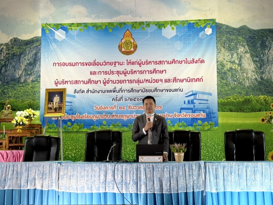 | วันที่ 24 ธันวาคม 2567 เวลา 09.00 น. ดร.ศักดา ชัยภัย ผอ.สพม.ขอนแก่น เป็นประธานในพิธีเปิดการอบรมการขอเลื่อนวิทยฐานะและประชุมผู้บริหารการศึกษา ผู้บริหารสถานศึกษา ผู้อำนวยการกลุ่ม/หน่วยฯ และศึกษานิเทศก์ สังกัดสำนักงานเขตพื้นที่การศึกษามัธยมศึกษาขอนแก่น ครั้งที่ 6/2567 ณ หอประชุมโรงเรียนภูผาม่าน ตำบลภูผาม่าน อำเภอภูผาม่าน จังหวัดขอนแก่น โดยมี ดร.พิเชฐร์ วันทอง ผู้ตรวจราชการกระทรวงศึกษาธิการ เดินทางมาพบปะผู้บริหารสถานศึกษาในสังกัด สพม.ขอนแก่น และบรรยายพิเศษ เรื่อง การขอเลื่อนวิทยฐานะ | |