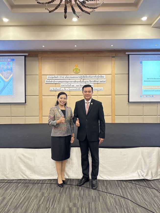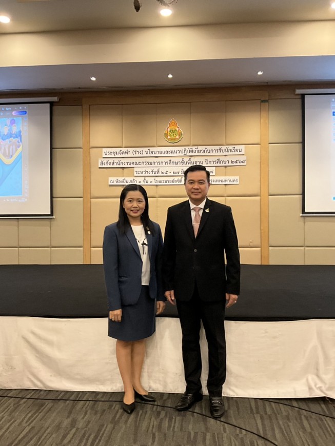 | เมื่อวันที่ 25 - 27 มิถุนายน 2568 ที่โรงแรมรอยัลซิตี้ กรุงเทพมหานคร ว่าที่ร้อยตรีธนุ วงษ์จินดา เลขาธิการคณะกรรมการการศึกษาขั้นพื้นฐาน เป็นประธานการจัดทำ (ร่าง) นโยบายและแนวปฏิบัติเกี่ยวกับการรับนักเรียน สังกัดสำนักงานคณะกรรมการการศึกษาขั้นพื้นฐาน ปีการศึกษา 2569 โดย ดร.ศักดา ชัยภัย ผอ.สพม.ขอนแก่น เข้าร่วมเป็นคณะทำงานในการจัดทำ (ร่าง) แนวปฏิบัติเกี่ยวกับการรับนักเรียน ปีการศึกษา 2569 เพื่อเป็นแนวทางให้โรงเรียนในสังกัด สพฐ. ใช้เป็นแนวปฏิบัติในการรับนักเรียน ปีการศึกษา 2569 ต่อไป | |