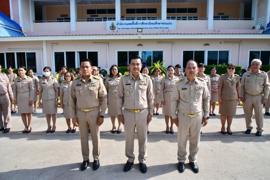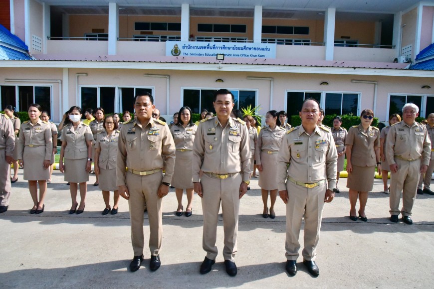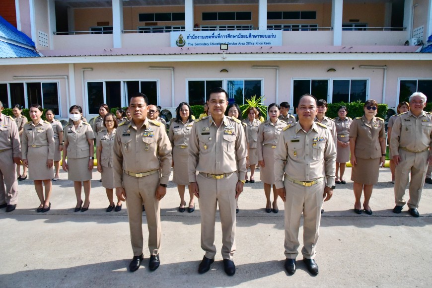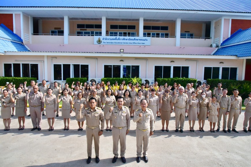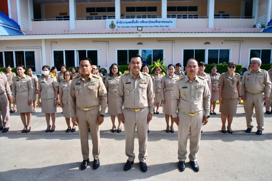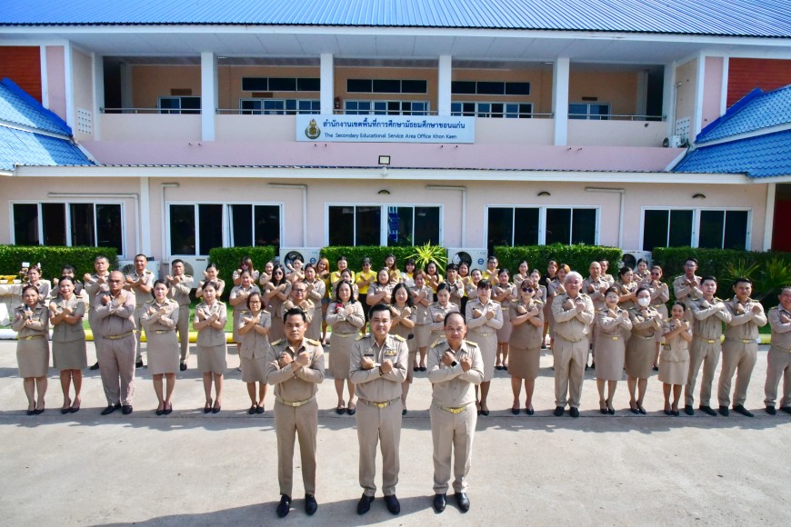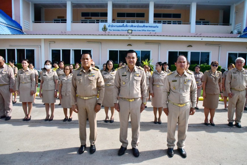 | วันจันทร์ที่ 9 พฤษภาคม 2568 เวลา 08.30 น. ดร.ศักดา ชัยภัย ผอ.สพม.ขอนแก่น พร้อมด้วย ดร.ทวีศักดิ์ สมนอก ดร.ปฐมพงษ์ สมอฝาก รอง ผอ.สพม.ขอนแก่น ผอ.กลุ่ม/หน่วย และบุคลากรในสังกัด ดำเนินกิจกรรมเข้าแถวเคารพธงชาติ สวดมนต์ไหว้พระ และกล่าวคำปฏิญญาเขตสุจริต ณ หน้าเสาธง สำนักงานเขตพื้นที่การศึกษามัธยมศึกษาขอนแก่น พร้อมกล่าว ให้โอวาทแก่บุคลากรที่ได้รับการบรรจุแต่งตั้ง เป็นข้าราชการ จำนวน 2 ท่าน | |