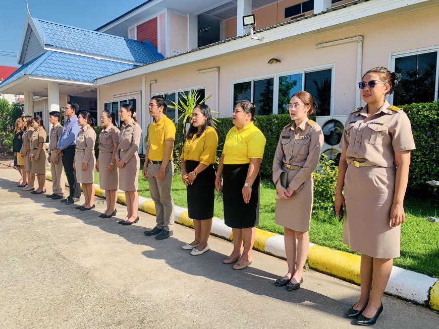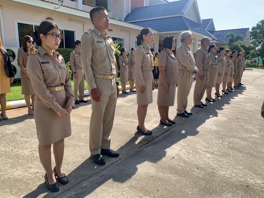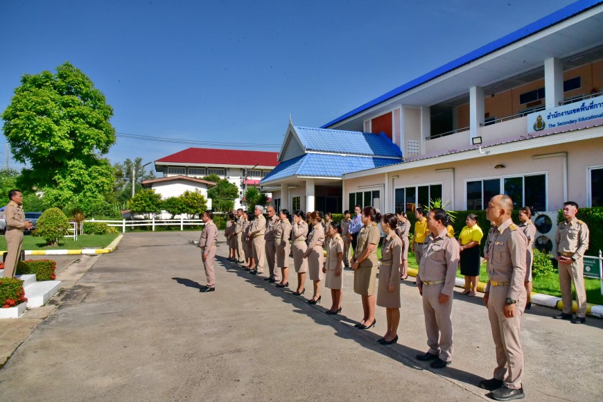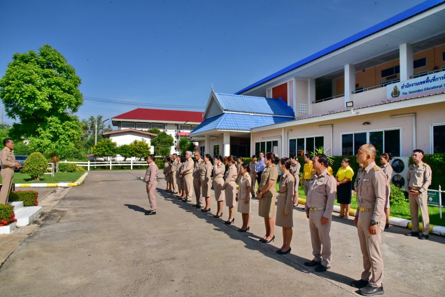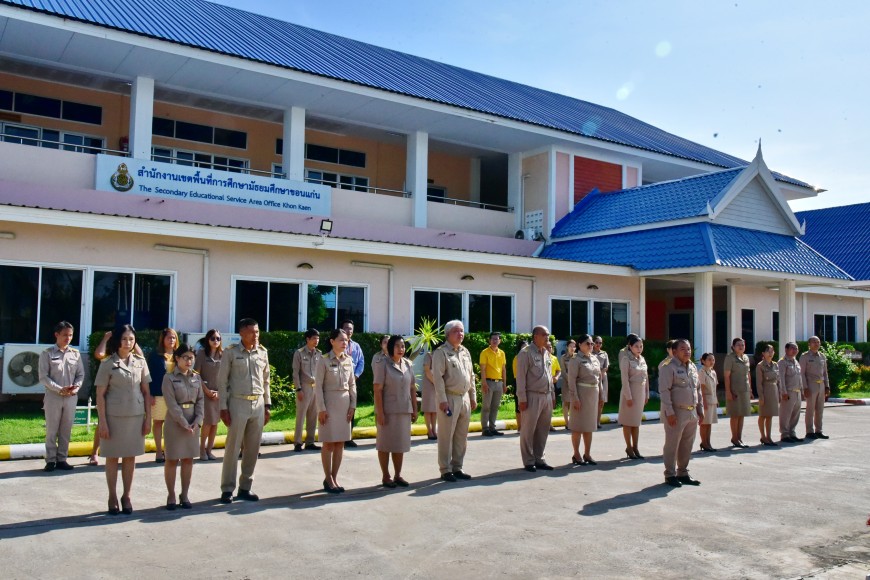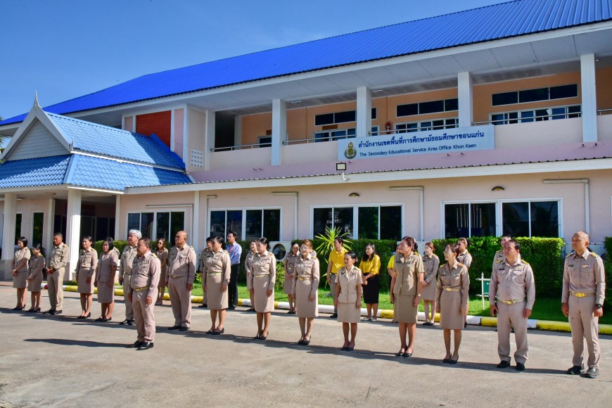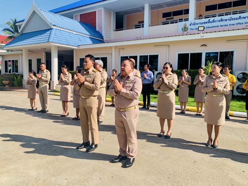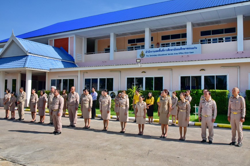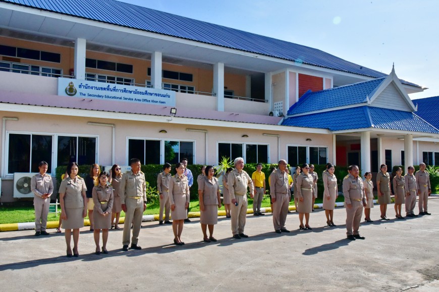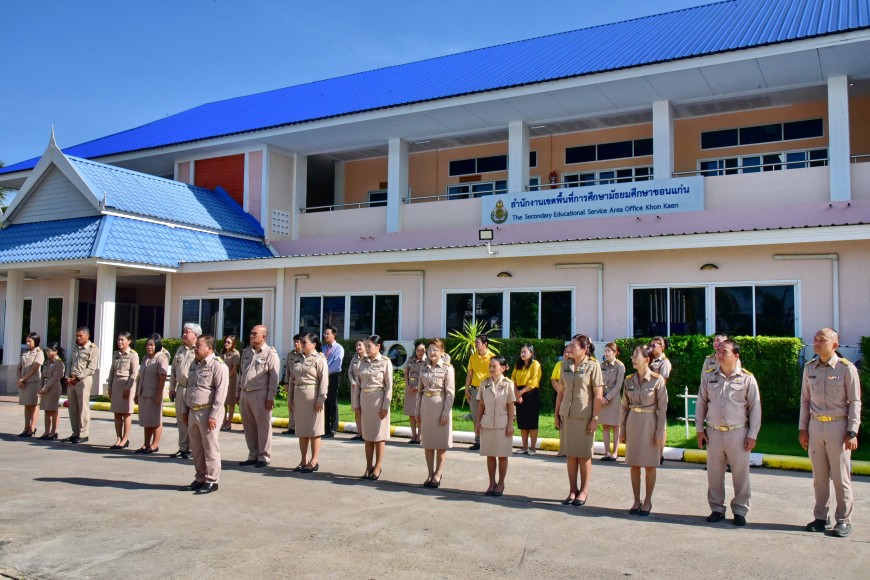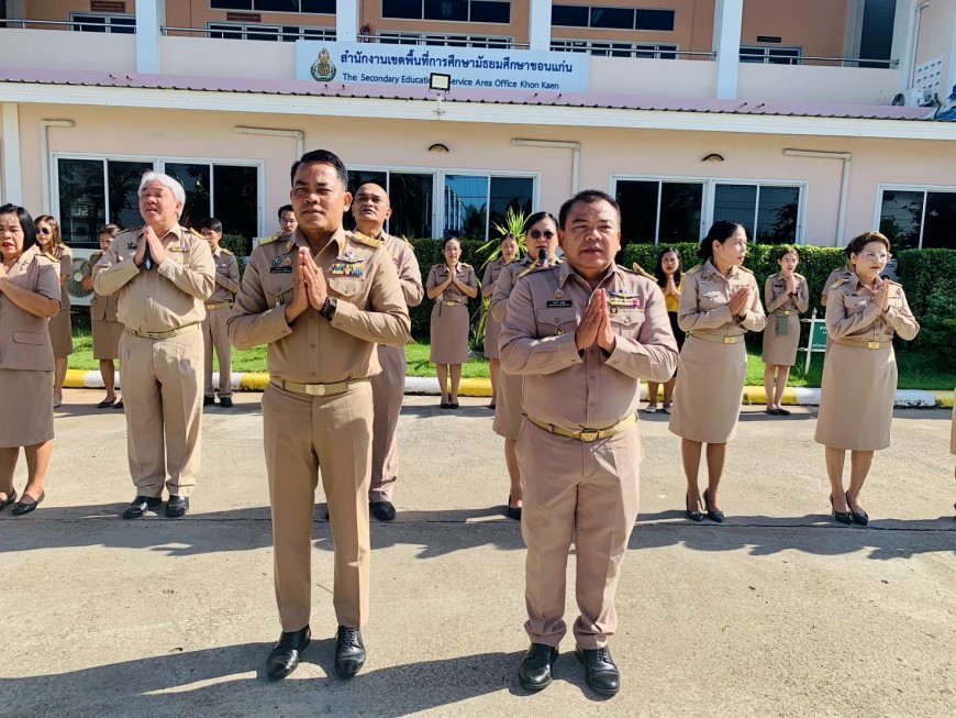 | วันจันทร์ที่ 14 กรกฎาคม 2568 เวลา 08.30 น. ดร.ศักดา ชัยภัย ผอ.สพม.ขอนแก่น มอบหมายให้ ดร.ทวีศักดิ์ สมนอก พร้อมด้วย ดร.สุเนตร์ ทองโพธิ์ รอง ผอ.สพม.ขอนแก่น ผอ.กลุ่ม/หน่วย และบุคลากรในสังกัด ดำเนินกิจกรรมเข้าแถวเคารพธงชาติ สวดมนต์ไหว้พระ และกล่าวคำปฏิญญาเขตสุจริต ณ หน้าเสาธง สำนักงานเขตพื้นที่การศึกษามัธยมศึกษาขอนแก่น พร้อมกล่าว ให้โอวาทแก่บุคลากรเกี่ยวกับการปฏิบัติเป็นข้าราชการที่ดี | |