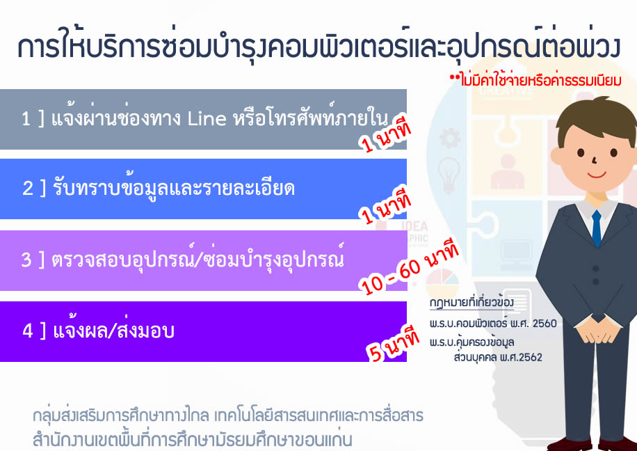 การให้บริการซ่อมบำรุงคอมพิวเตอร์และอุปกรณ์ต่อพ่วง กลุ่มส่งเสริมการศึกษาทางไกล