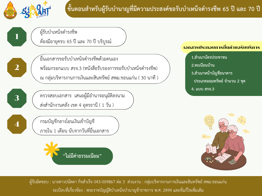 ขั้นตอนการขอรับเงินบำเหน็จดำรงชีพอายุครบ 65 ปีและ 70 ปี กลุ่มบริหารงานการเงินและสินทรัพย์